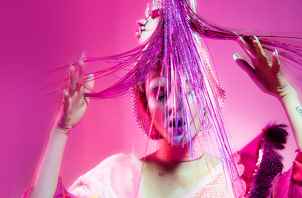 I wanted to portray Of Blood in a very bubblegum/pop sentiment – as not to make it gruesome but rather very femme and fabulous. Although glossy and rather psychedelic, this is where the ego begins her radical transformation. Sex and addiction riddled in pink blood. The shrine is filled with glitter dicks, hairy vaginas, pink dragons and kitsch ornaments I have collected over time. Indulgently a shrine to me/of me.