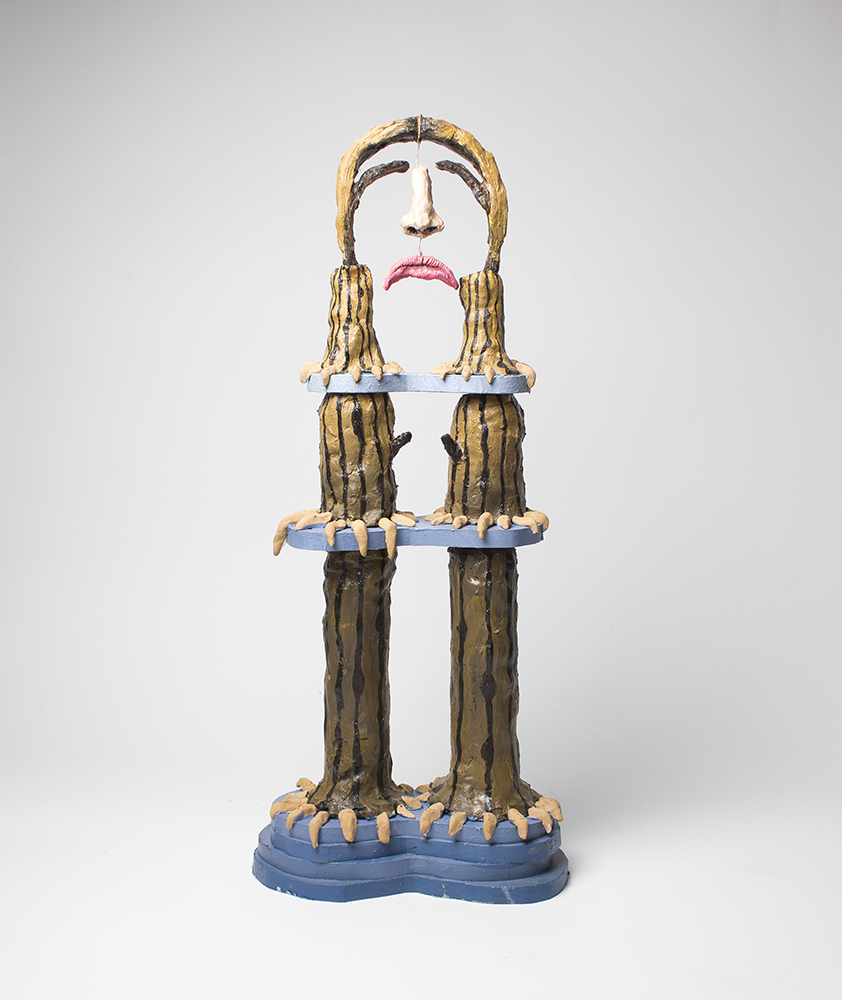 Some examples of pieces that display these mutilated bodies is ‘Ponytails Continued’ – a set of legs without a torso and a floating head with no neck as well as ‘In My other half’s other half’ – a single large blue eye skewered through a large sculpture peering up at the eyebrow above.
