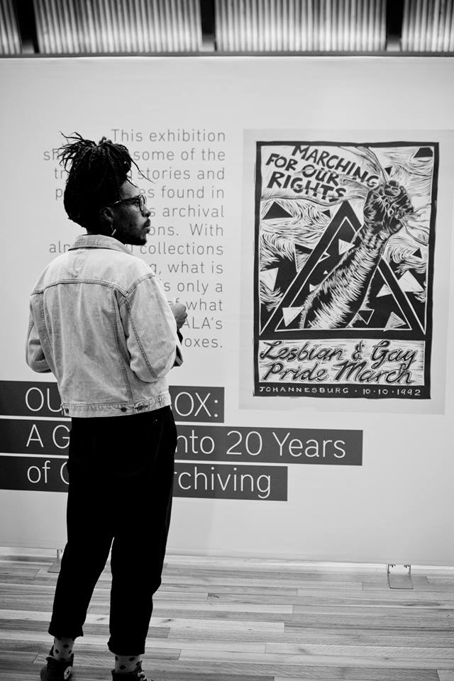 In addition to this GALA curates an exhibition every two years. By translating their messages into a visual language, they are able to engage with another audience and present another avenue for dialogue through a different medium. “Our latest exhibition (2017), held at the Johannesburg Holocaust & Genocide Centre, was a retrospective exhibition focused on the archive collections, and formed part of our 20th anniversary celebrations. It was called ‘Out the Box: A Glimpse into 20 Years of Queer Archiving‘.”