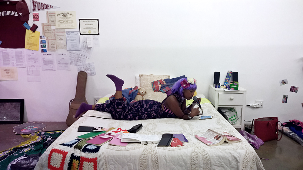 A walk around the room was a trip through Koeksista’s history; her travels, her vices, her hairstyles, herself, existing within her exhibition as person and performer. Her brilliant execution of transposing herself into these four walls made me revisit the question, how much of daily activity, of living, is performance?