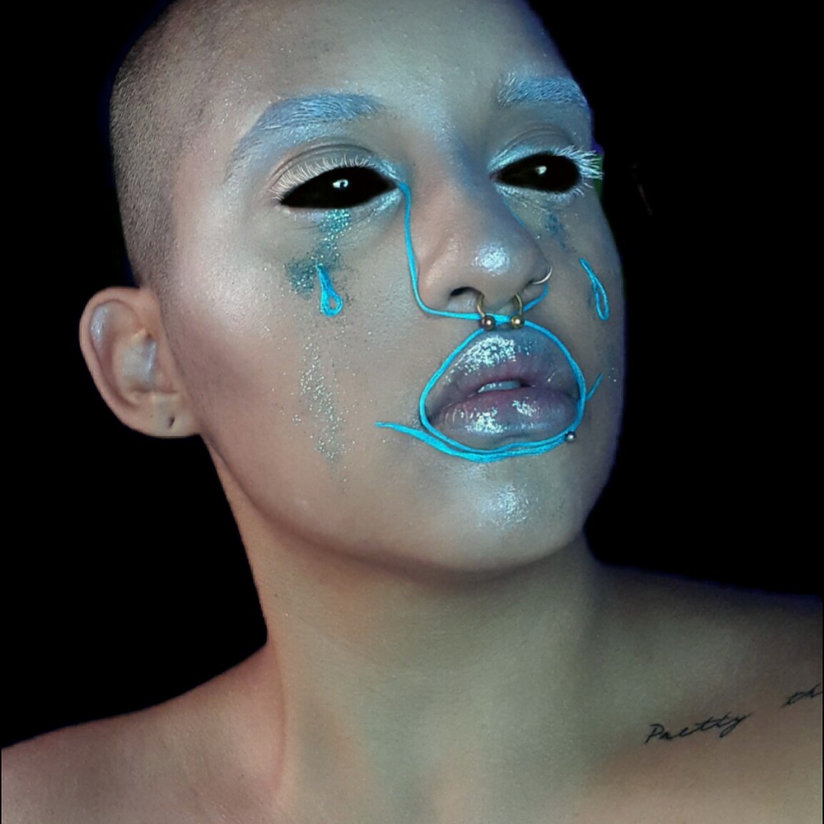 Describing herself as an alien, Kristina uses her own face and body, as well as those of models, as blank canvases for her out of this world looks. In our interview, she unpacks how her work is primarily inspired by emotion. “I use this to fuel my creativity,” Kristina explains, “I see and feel in colour. To me this is necessary as a makeup artist because I’m constantly coming into contact with humans and needing to transform/translate their energy as I paint their face.”