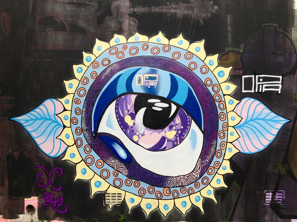 The word ‘Opia’ is a fabricated word created by a psychologist signifying the abstruse intensity of looking into someone’s eyes. A feeling that can be experienced as invasive and vulnerable in chorus.  Opia explains that she chose this pseudonym, as it is how she feels when creating her work for the public to see, as well as the fact that it ties in with the use of eyes in her graffiti pieces that are her signature. “Just like most artists, I put a lot of myself into my art so sharing it with others is quite terrifying. However, I hope that there are some people that feel simultaneously invasive and vulnerable when viewing my graffiti instead of it just being a background for a teenager’s selfie.”
