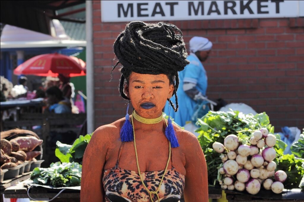 “The use of ibomvu (red clay) as a medium is predominant in all my work. Ibomvu in South African culture is used for different purposes on people for physical and spiritual cleansing purification. It is always evident in my dreams, I am always smothered in it or walking in
