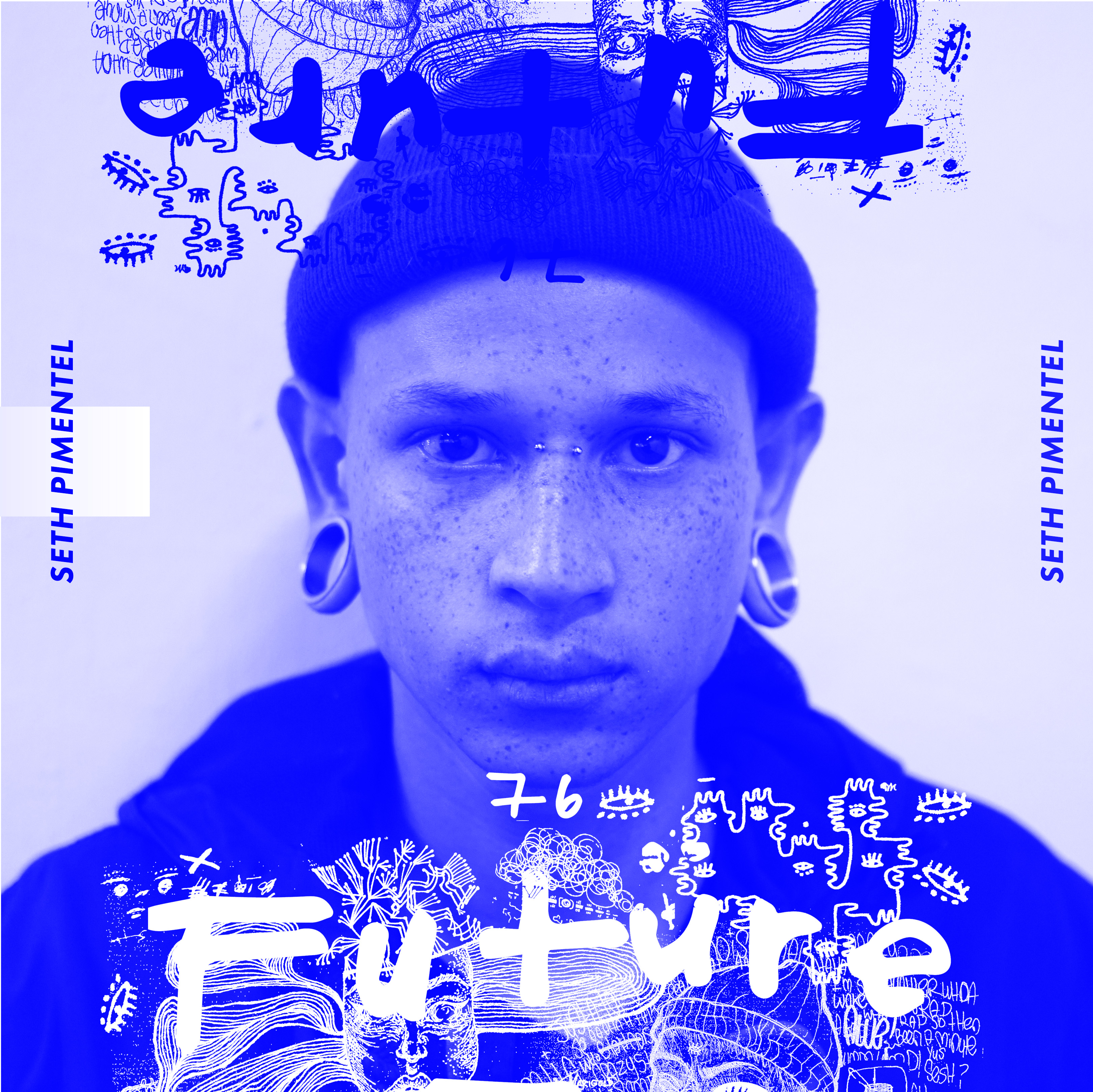22-year-old illustrator Seth Pimentel, aka CAT FAP, sat casually in the winter morning sunlight resting his arms on his legs in the courtyard of One Eloff. His black Thrasher cap with its yellow logo greeted me before his eyes did. I sat down next to him and we discussed his art and vision for exhibition Future 76.
