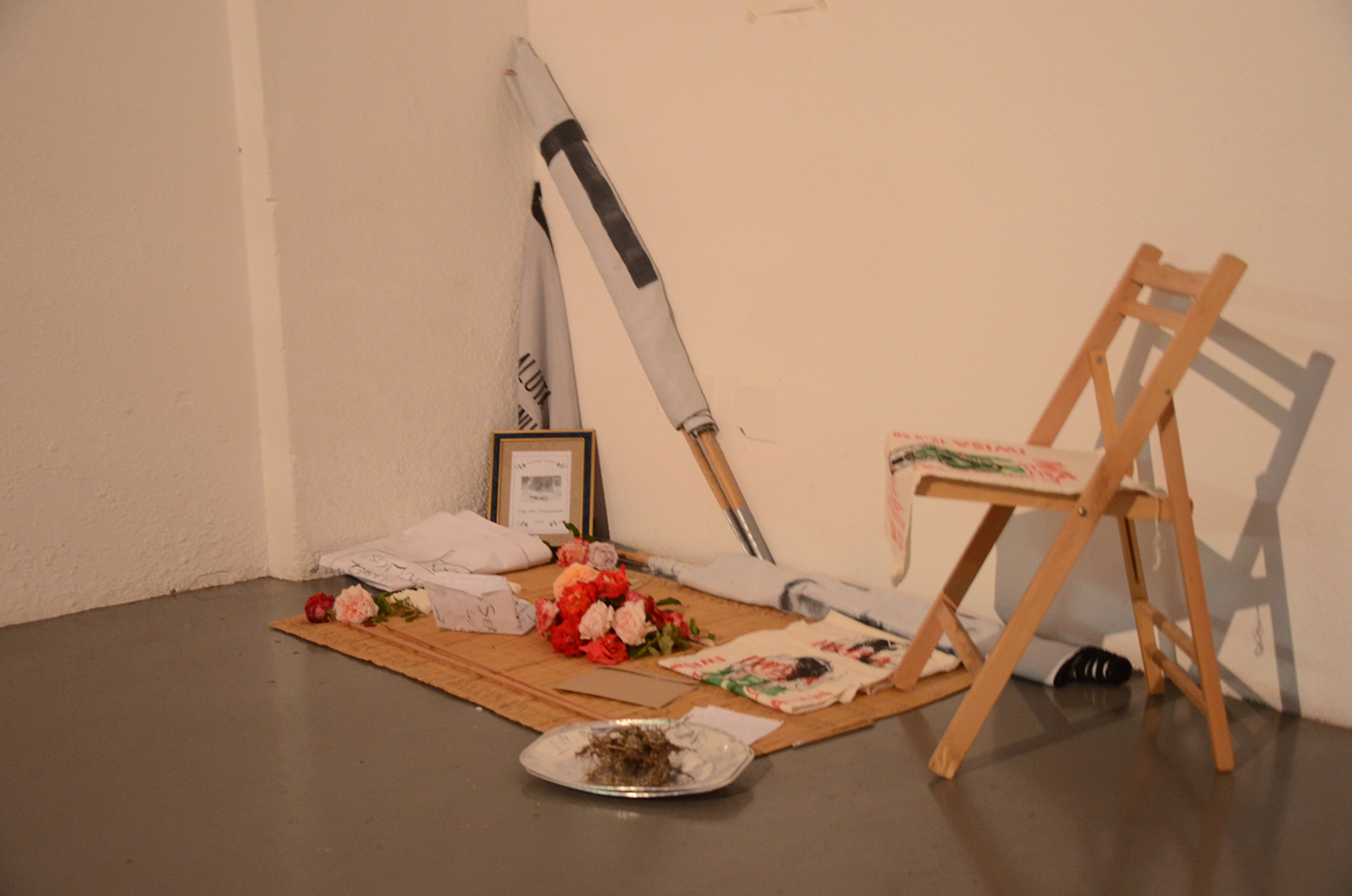 Fragrant tendrils of smoke and echoes of musical melodies emit through an otherwise unmarked address. A corrugated iron door opens into an intimate space of symbolic death. Sliver flags catch glimmers of the florescent lights upon arrival. A space of mourning marked by corner-bound shrines – memorializing moments of a collective life. Freshly plucked roses adorn the metaphorical grave. Commemorating a moment, as Title in Transgression is laid to rest in this funeral procession.