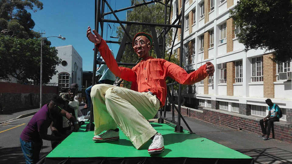 A more recent production, Slyza Tsotsi, was made for the Cape Town Carnival. This giant puppet was based upon the archetype of the pantsuala dancer, providing a sense of mythological heft to a modern figure. Along with their own work, the Ukwanda team is committed to mentoring the puppeteers and visual artists of tomorrow regularly providing workshops at townships and high schools around Cape Town.