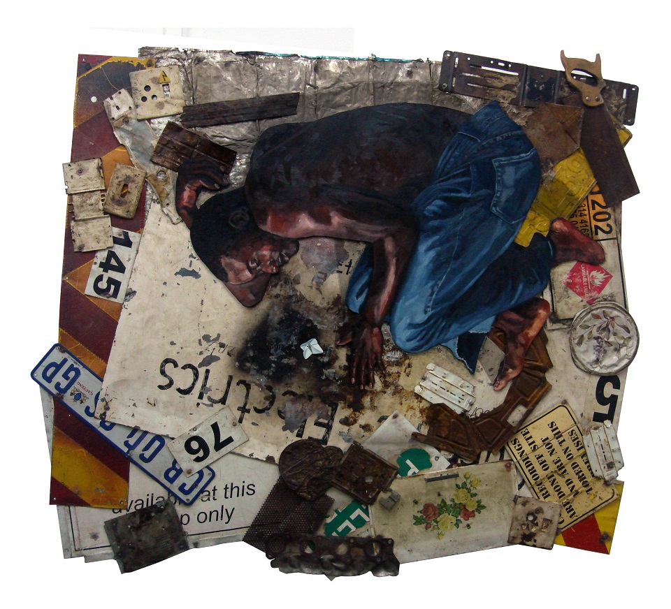 Giving new life to discarded material and combining this with the painting of human figures and familiar packaging, visual artist Vivien Kohler reflects on socio-economic issues. With faith, hope and overcoming difficulties as the foundational inspiration for his work, he attempts to restructure the residue he witnessed growing up through his works.