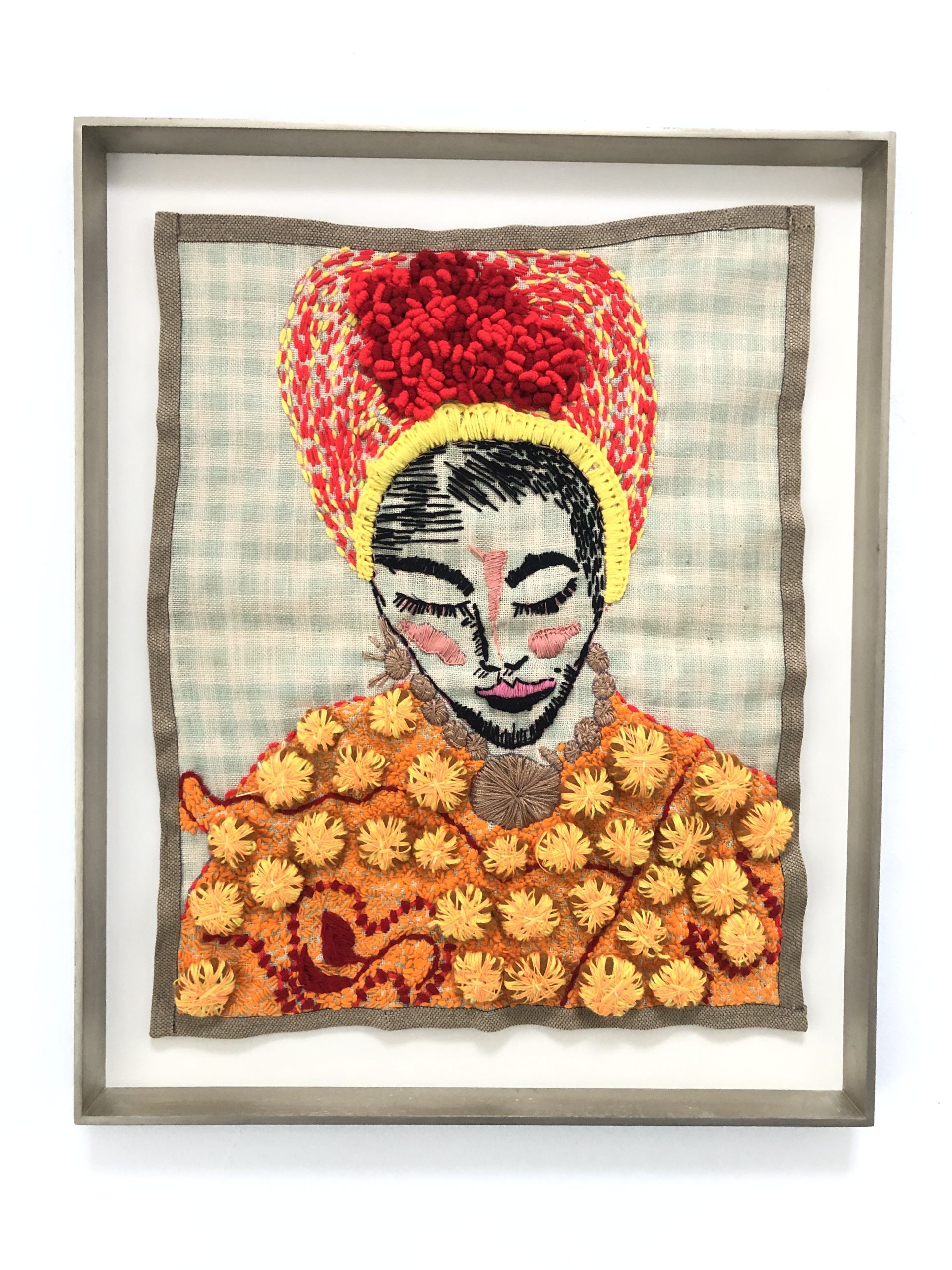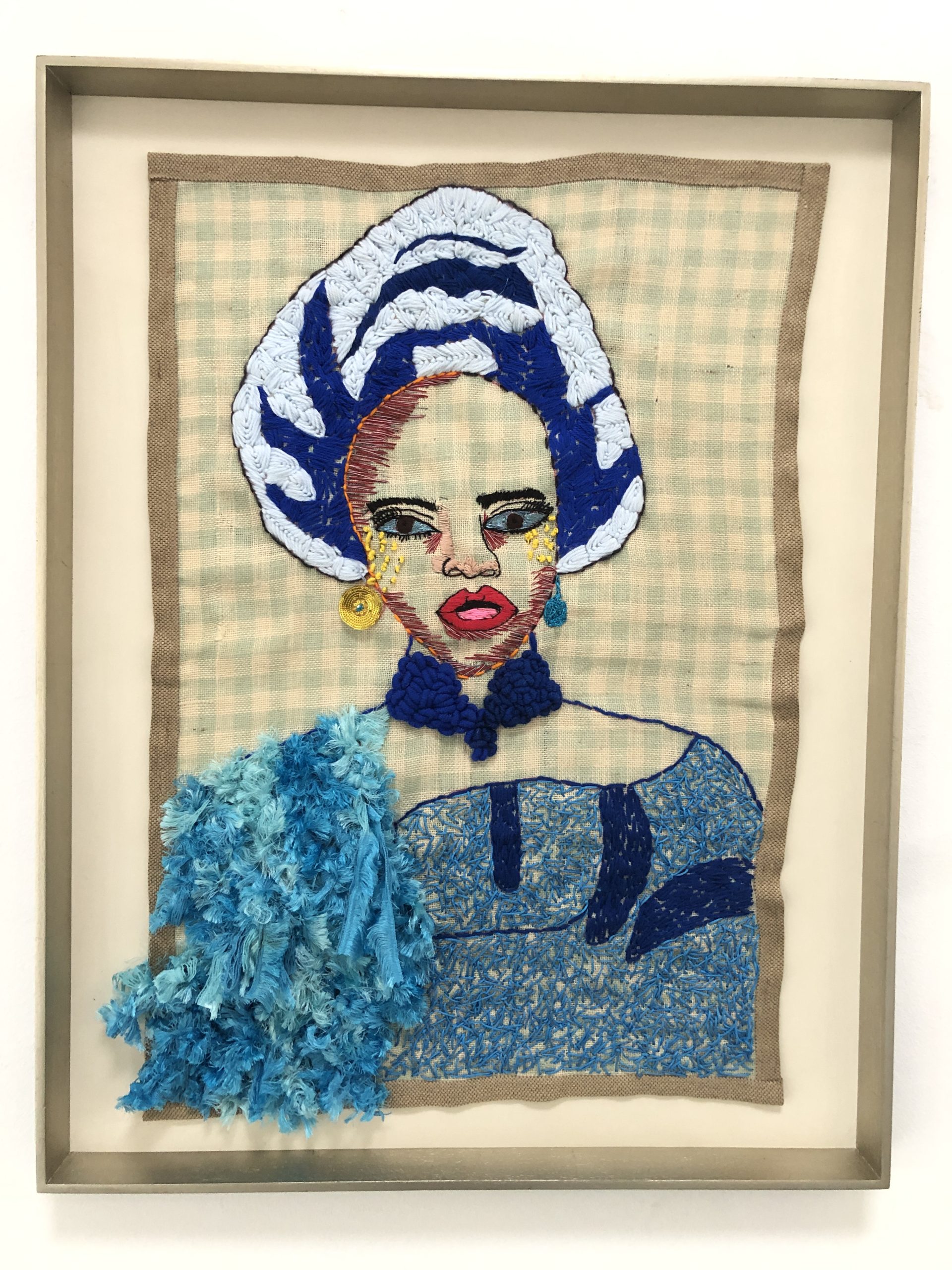 Lerato Motau: Yes, I have been doing women wearing headdresses for such a long time. I think I started in 2010 but only started using embroidery as a medium in 2012. I love our patterns on the fabrics of different cultures, like on the doeks. I feel that this is not just a representation of being umakhoti or a cultural thing, but it can also be stylish, and you stay and look beautiful as a woman with your hair or doek.