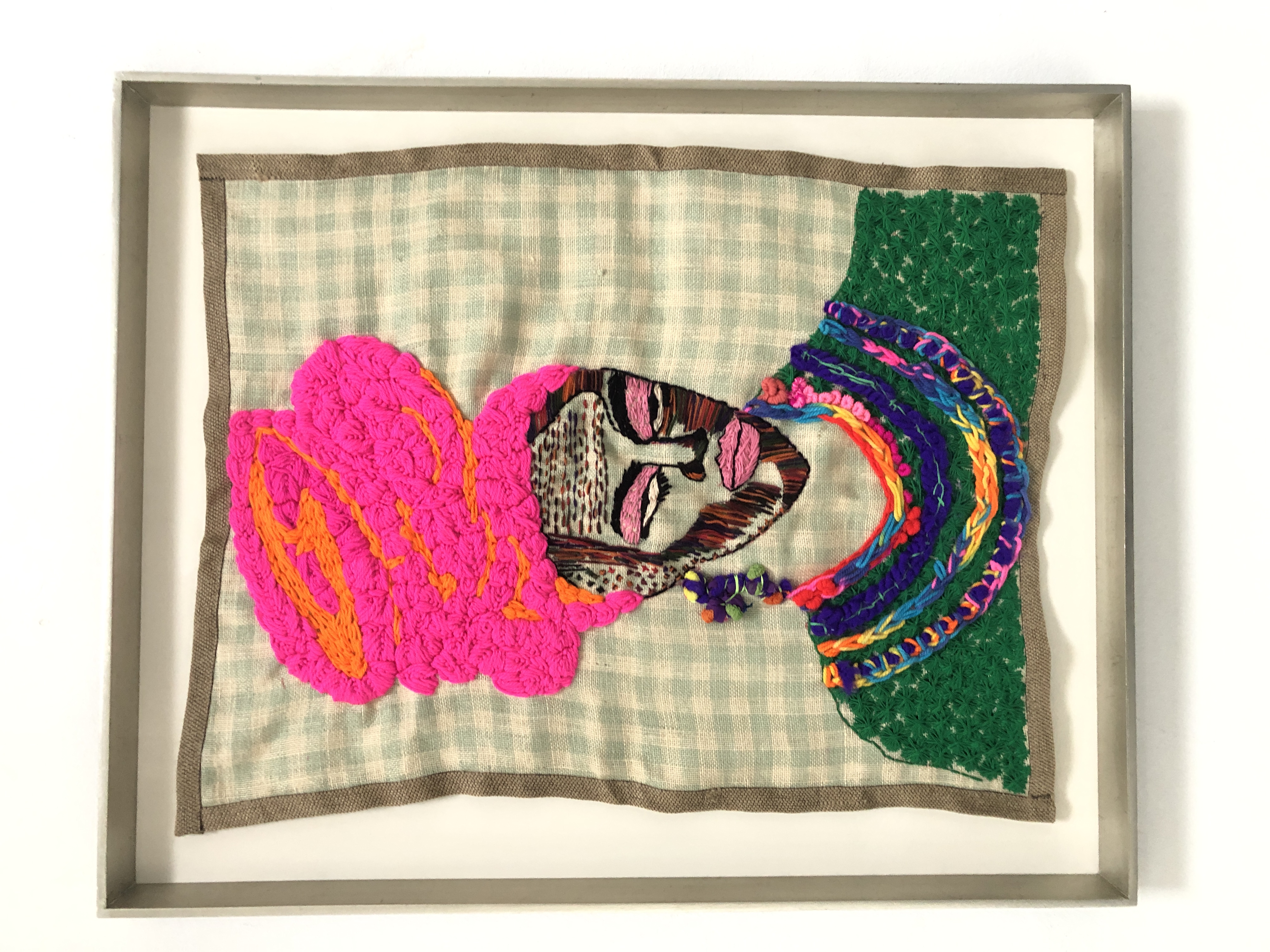 Lerato Motau: I remember I enjoyed needlework as a medium in primary school because I had dyslexia, and I did not know what was going on with me. I could not read and write. I was the happiest child in class regarding needlework, creating work that I loved. This is one medium I can say sustained me throughout my life. Even when I studied Fine Arts, at the back of my mind I knew that I still must use embroidery as a medium and in 2005, I enrolled on a course in which I studied basic embroidery. That was the time the childhood thoughts and memories at the back of my mind came back and fulfilled my space. I am left-handed and it is difficult to teach a person who is left-handed to embroider, knit or crochet. Yet, I remember our teacher would always ask me to demonstrate to the class. I felt proud that there was something that I knew how to do. I also wanted to find a communication tool that does not have text but is visual. That is why if you look at the faces, some of them are so detailed that they are more of bespoke pieces that one enjoys looking at. I wanted that to also come across. Because of my dyslexia, sometimes I do not like writing much when I share art on social media but the art has to speak for itself.