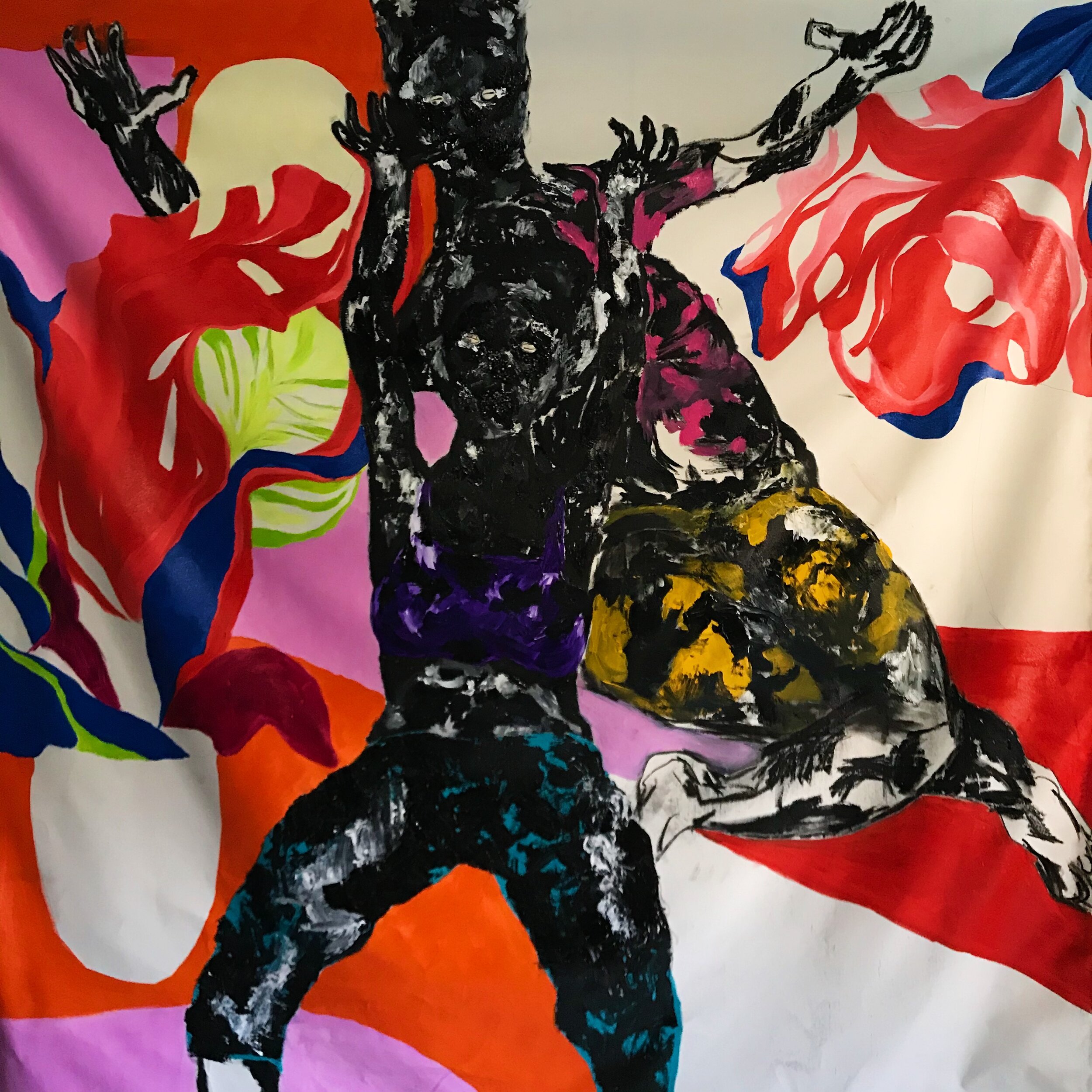 Ultimamente estou me aplicando mais a pintura. Estou vendo como a perda da identidade que nossos corpos tem no mundo é grave. Você não ter um histórico, não saber de fato, por onde seus antepassados passaram para que você possa continuar e até onde você pode ir. Eu penso como seria rico eu ter uma construção de identidade já dada, mas como eu não tenho, vejo muito potencial em criar do zero. Fico pintando compulsivamente, como uma forma de “herdar” a mim mesma.