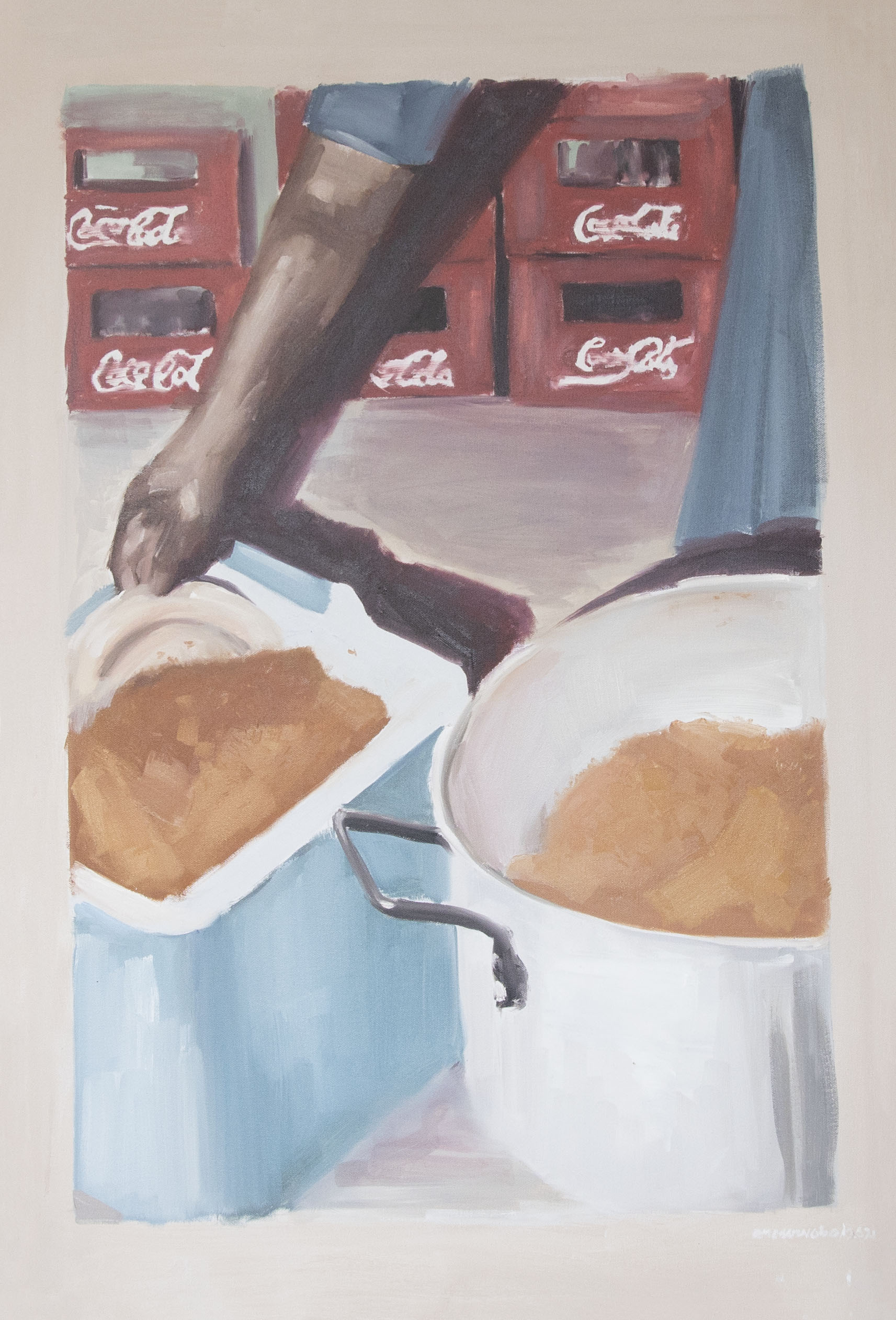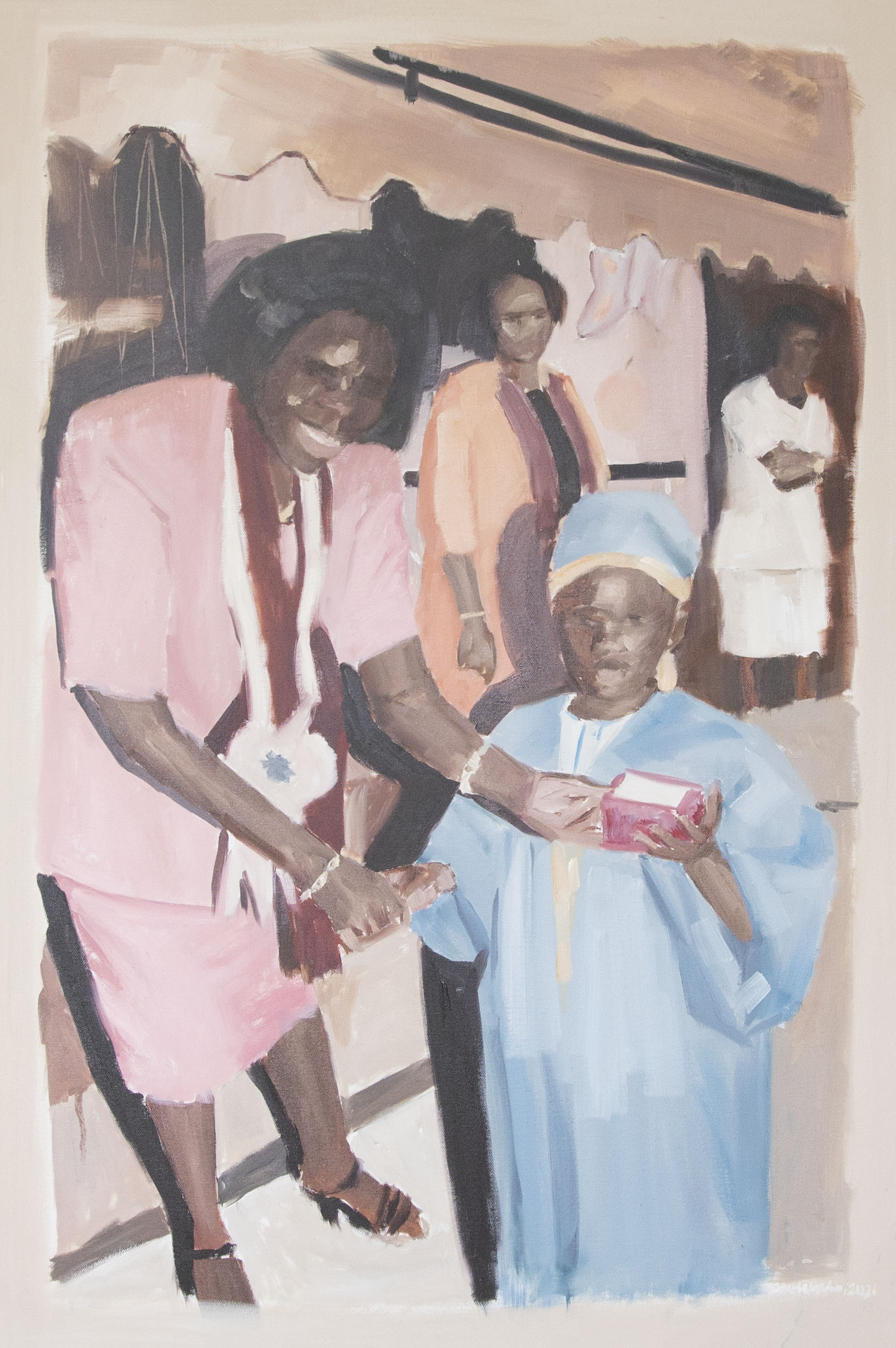 I’m thinking about a series of oil paintings by Nigerian artist Damilola Onosowobo Marcus.