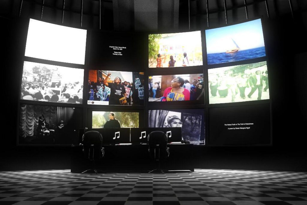 The Fourth edition of the Kampala Biennale titled Get Up Stand Up, is unlike others we have experienced before. Taking from the Bob Marley song, it encouraged artists to create work that is inspired by standing up to the challenges they face. The exhibition takes on a virtual form due to the covid-19 pandemic and leads to an immersive experience. Reflecting on curator Simon Njami’s curatorial concern, “how can we envision freedom in a globalised world?” 8 masters and over 30 apprentices shared their work in the 3 hour virtual exhibition through multiple media. South African artists Tracey Rose and Andrew Tshabangu were both masters in the biennale each bringing a different perspectives of the curatorial concern. Rose’s studio, Rock Starra, takes one through a cave in the shape of an Egyptian ankh as it explores a multitude of themes from cultural practices to speaking against misogyny through various media. Tshabangu’s studio called History is the home address, brings alive an empty shebeen as the viewer’s gaze is directed to the photographs on the shebeen walls; each a photograph by one of Tshabangu’s apprentices.