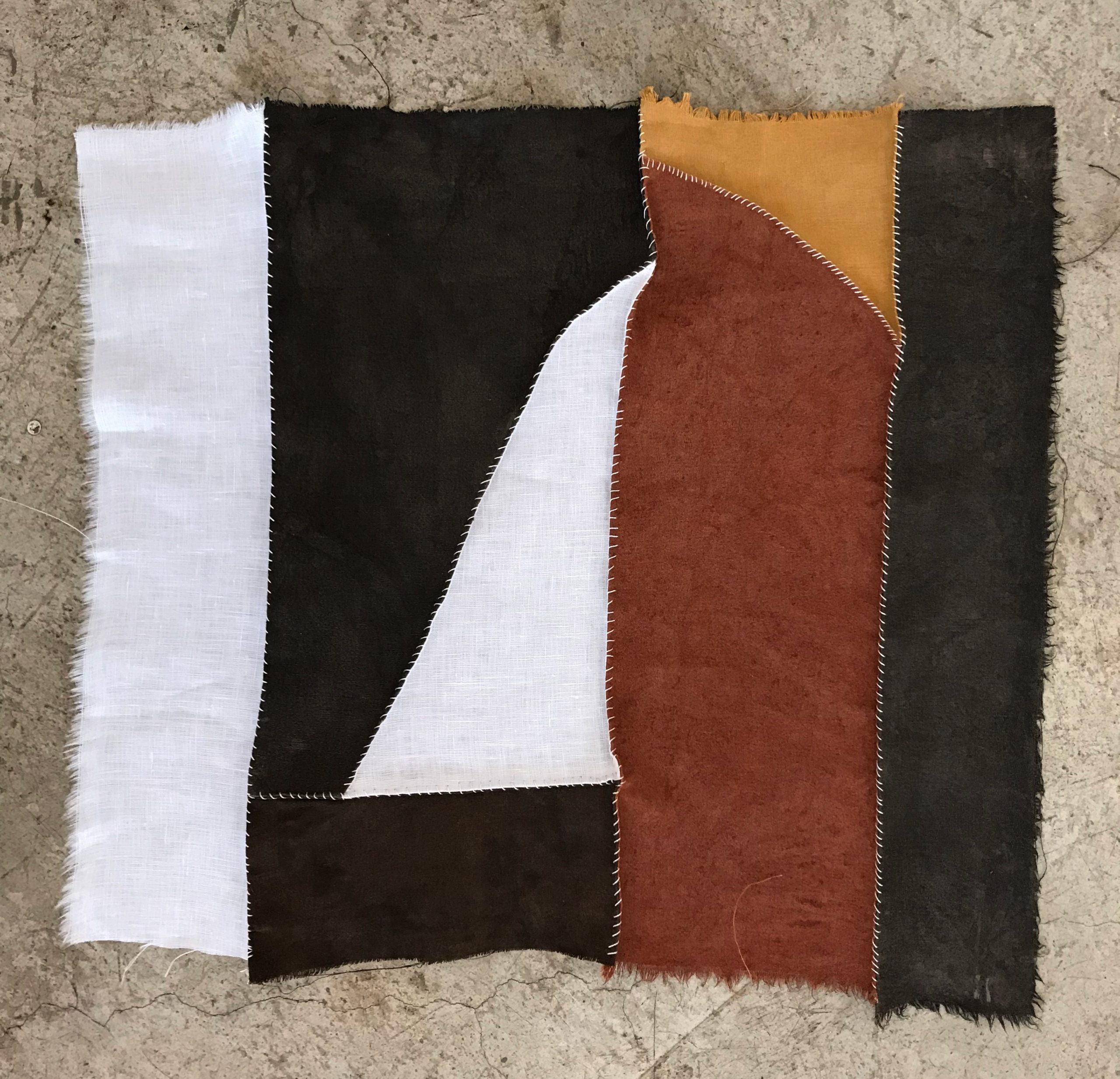 One of the ways she goes about her research is working backwards. All of her work is made up of plant-based dyes, a practice she’s traced back centuries to the Mali people. “Plant-based dying follows the same principles of pigment dying,” she says. “People in Mali have been doing this for centuries, for ages, so for me, it would make sense that that technology was around when our ancestors were around and that’s how they dyed their cloth.” In this way, Makwakwa also works with barkcloth, stitched together with sisal, as would’ve been done historically.