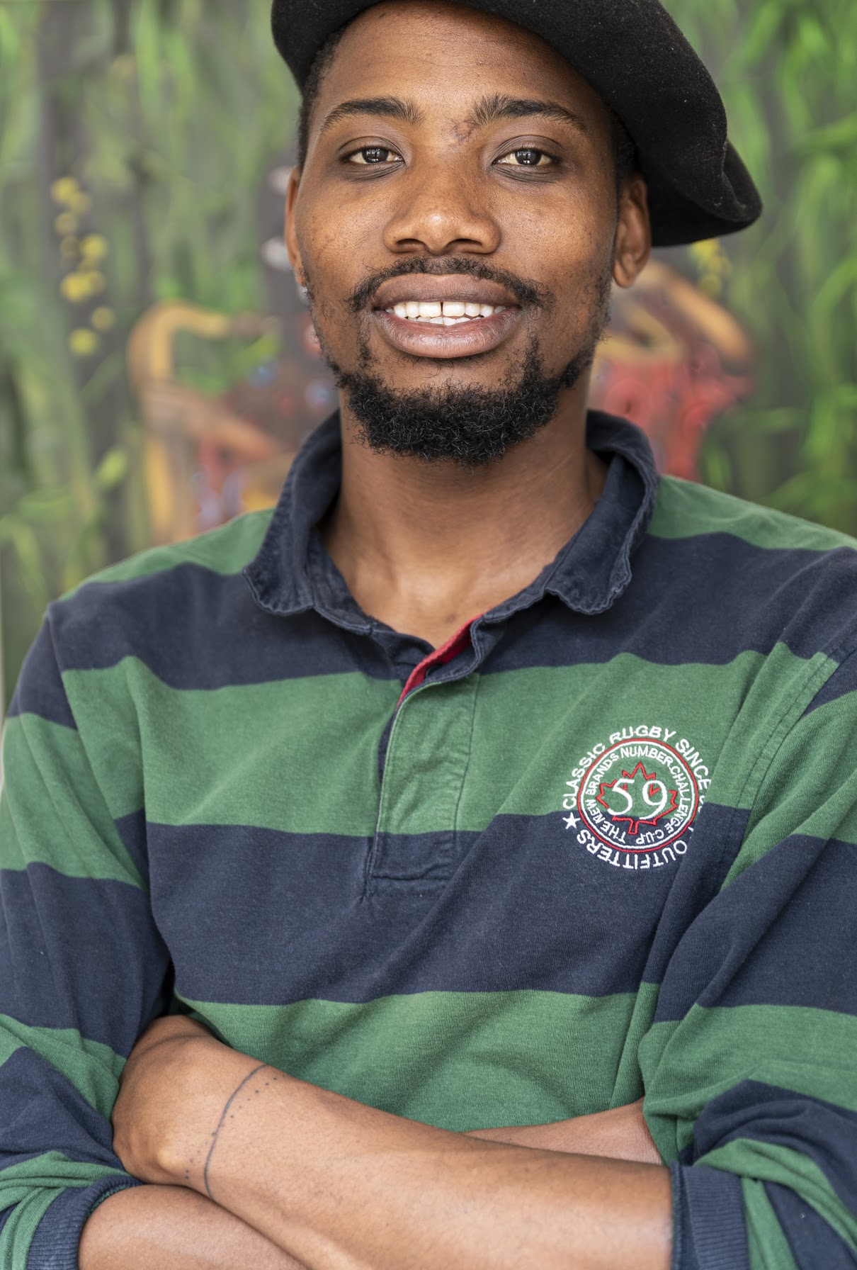 Lerato Motaung is an artist whose work is created in his processes of evolution and experimentation. His desire to form intimate understandings of materials and methods of practice have led him to frame himself within the porous sphere of mixed media. While studying for his National Diploma in Fine Art from Tshwane University of Technology (TUT), Lerato moved away from painting and drawing out of frustration and discovered the formative possibilities of sculpture. In the time since then, he has challenged himself to work with these materials again — while still holding on to aesthetic and textural sensibilities groomed through sculptural work. This oscillation over time and between specific artistic periods in his journey so far has allowed him to interrogate the behaviour of these mediums. In this way he is able to articulate the strengths of the mediums he utilises in conjunction with his thematic explorations.