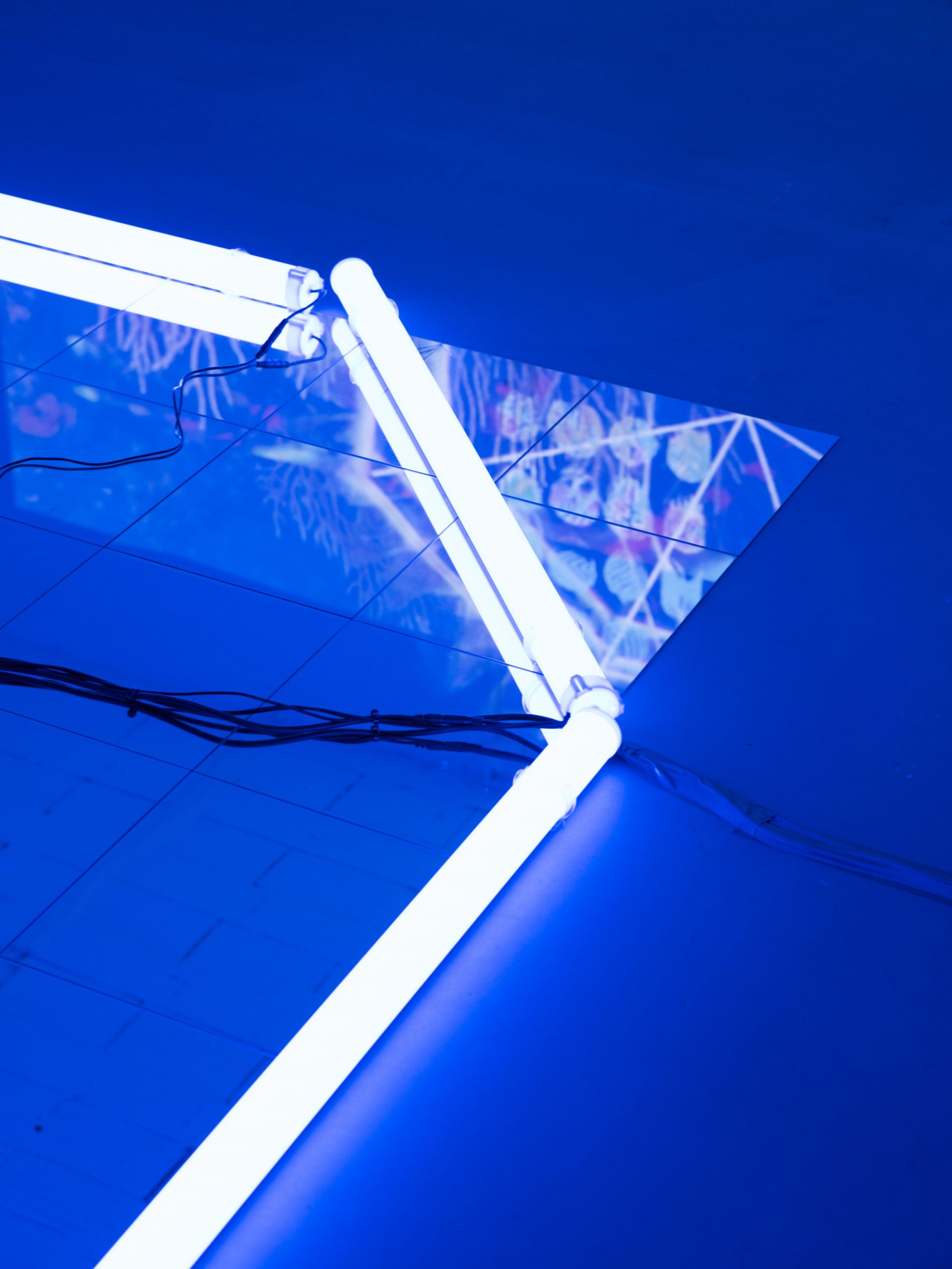 Drexciya tells the story of those enslaved women who were found out to be pregnant while in the belly of a slave ship and consequently thrown off board. The legend imagines the lives of their children, who—born under water—adapted to under-marine life and founded a Black civilisation at the bottom of the Atlantic and in doing so, injects this site with new potential and reclaims the agency of enslaved Black people, whose lives and legacies have been widely erased. The exhibition brings together many forms of cultural productions as well as elements from the academy, with Maïté Chénière facilitating communal experiences that challenge the hierarchies in the status quo and that centre queer Black people. Planting new suns in the Cosmos through the manipulation of space(s) such as such as night clubs, exhibition spaces, performance venues and immersive installations in order to shift the perception of time.