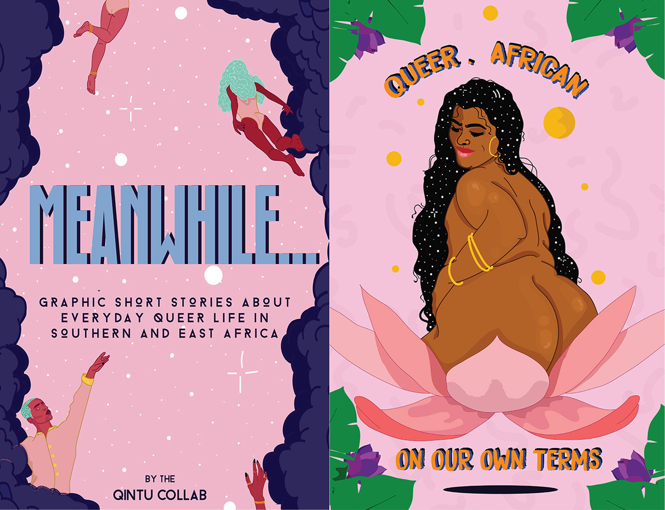 Floating bodies, limbs longing in a pastel universe. Stars glinting with possibilities. Surrounded by encroaching cloud of electrified reality. Meanwhile… Graphic short stories about everyday queer life in Southern and East Africa is both beautiful and heart-wrenching. The visual anthology offers a re-imagining of queer life on the continent. The comic book format frame moments of lived experiences, depicting the “queerness of the imperfect present, even as we strive toward a more just future”.