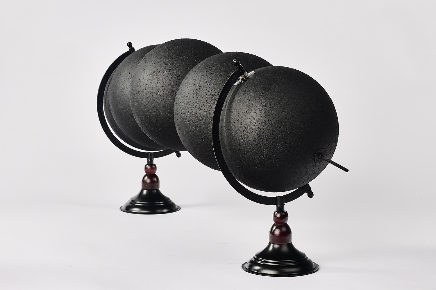The spherical globe is the idealised figure of the planet in Western cosmology: seamless, smooth, unitary and knowable. Counter to this image of the world, Dennis proposes a series of transformations of the sphere — distorting and stretching the model in order to find space for other worlds, other worldly possibilities.