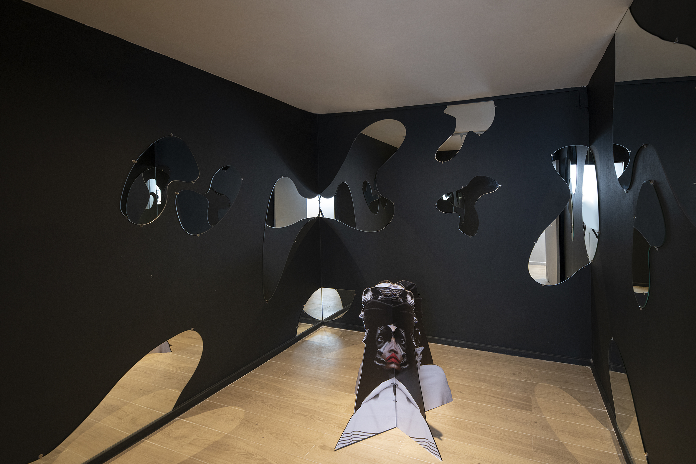 Lunga Ntila: As a team we thought it was important we guide the viewer through the space, leading them to the room where they see themselves and are immersed into the mirror room installation. You will notice there is a particular direction that the figures in the artworks are moving towards.