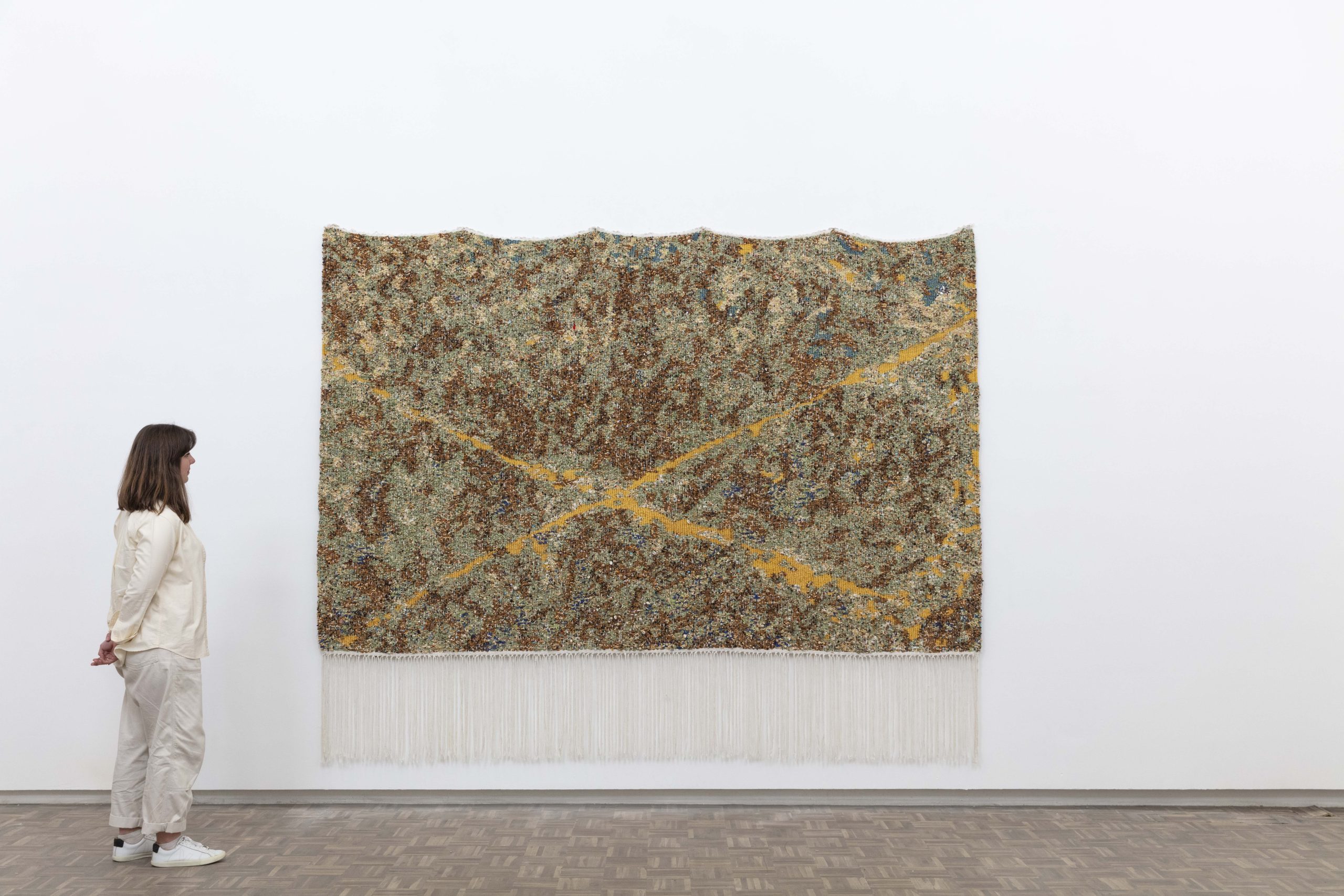 Igshaan Adams, skarrelbaan; 2022. Installation view.