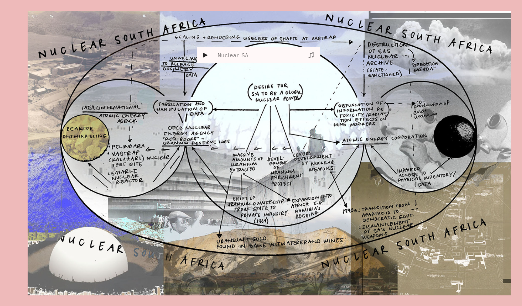 Drawing on research surrounding nuclearity in Africa from the Atomic Age to the present, the collaborative project moves one from the immaterial data bank of the cloud, down into digital infrastructures embedded in the soil, to unearth contested histories of discovery and uneven distribution.