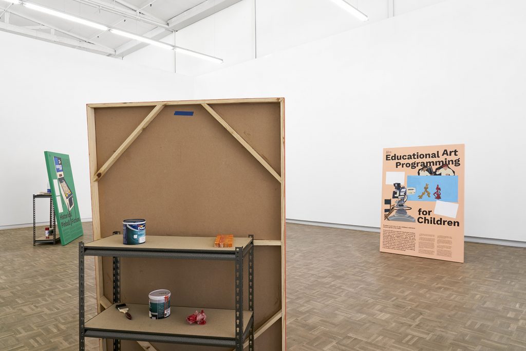 Sure Thing! can be read as an exhibition but it can also be read as technology —in so far as technology is the application of knowledge for practical purposes in a specific industry. Using dry ice pellets, plaster and a tripod, we learn how to build a volcano that wrecks a gallery or how to re-engineer a model of monetisations of art objects (in this case paintings) where the monetisation can fund the production of more project-orientated and dematerialised work. Messina instructs; 1. Figure out the practicalities of producing and find the path of least resistance. Acrylic on board is possibly the least intimidating entry point, with quick drying allowing more time to figure out how to paint. Stick to a production template initially: resolve measurements and get the wood cut to size, use the mitre for angle cuts on the ends, work up the sanding grits and prime.