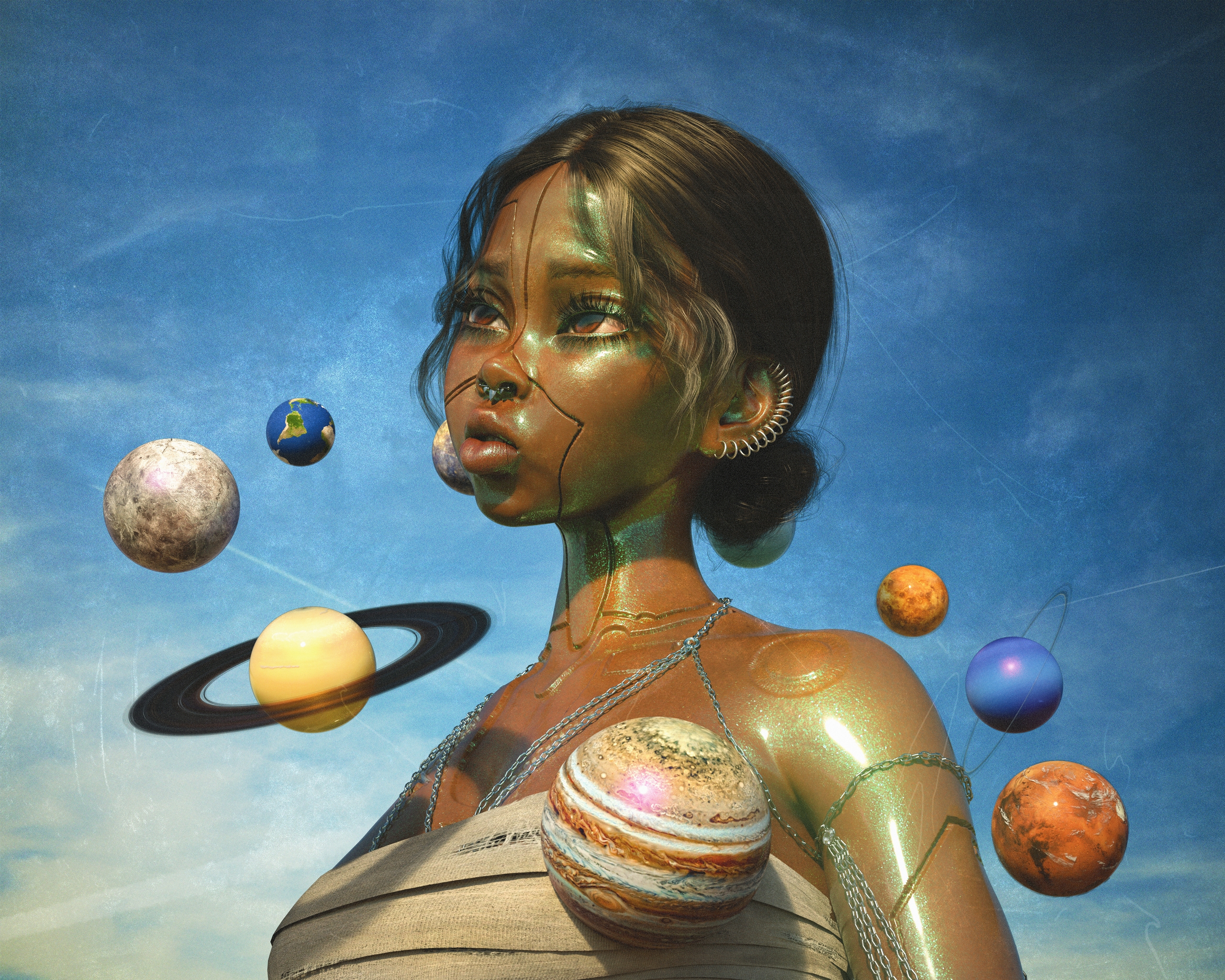 Curated by 17-year-old, Diana Sinclair, The Digital Diaspora is an exhibition that features Black creatives from around the globe and aims to spotlight Black artists working in the non-fungible token (NFT) market. Produced by Towards Utopia, the exhibition takes form both on and offline with a gallery space in SoHo New York exhibited by Superchief Gallery NFT —the world’s first physical dedicated NFT gallery space— and a live exhibition and auction online, taking place on Foundation. The exhibition opened on Juneteenth, an annual holiday in the United States celebrating the end of slavery, and takes on a multifaceted approach to showcasing and selling work by Black artists in a way that incorporates NFTs. As an artist, activist and curator, Diana wants to use the technology of NFTs to not just expand the space for Black creatives, but also to address the intersectional marginalisation of Black people in general. The auction’s proceeds will benefit GLITS, a non-profit that provides housing and assistance to Black Trans people, and herstoryDAO, a collective devoted to collecting and conserving the art of Black femmes and Black non-binary artists through NFTs. Following the auction and exhibition, select pieces from The Digital Diaspora will be shown on LinkNYC screens across New York City, allowing further exposure for Black artists. Speaking on the exhibition Sinclair explained,