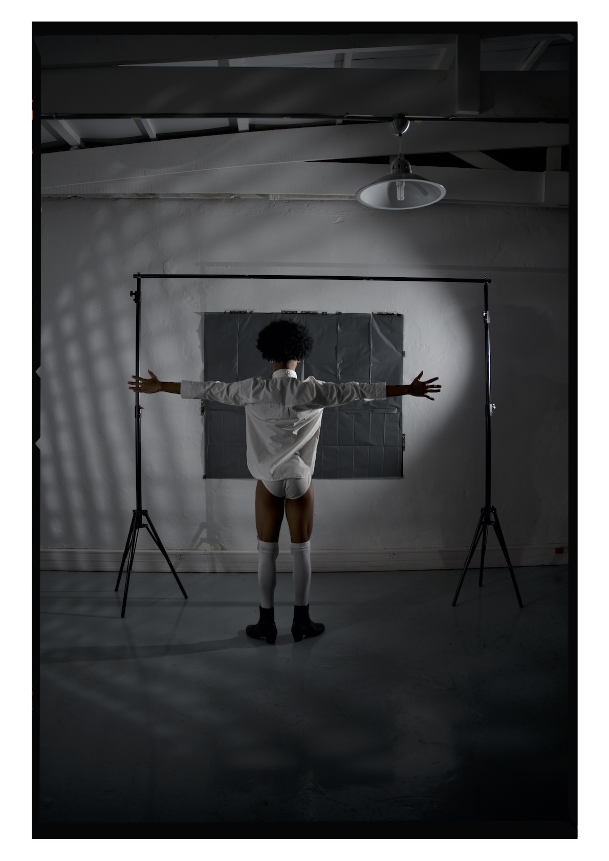 The self portraits look into how queer Black bodies get viewed by the white gaze, the normalisation of weird fetishes such us “white man gets blacked”, have cultivated not only a vicious but also a racist spectacle for bodies. Here I am, in my clean white shirt, well-groomed afro, knowing that what probably matters might only be what’s under my pants. This spectacle has led seeking for affection as putting yourself out on auction.