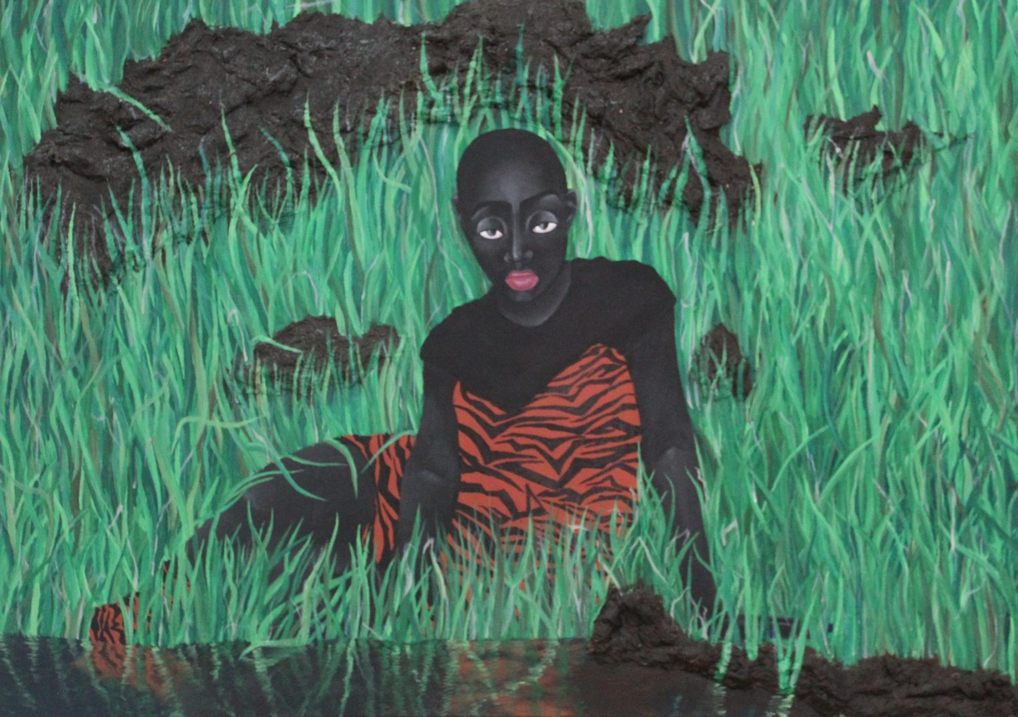 In addition, the highly pigmented skin tone in Tshabalala’s work is influenced by Kerry James Marshall’s paintings, noting that, “I really appreciate how bold, in-your-face and inescapable the blackness is”. She adds that, “there is no diluting it”. The legacy of colonialism still ripples through society, felt in forms like colourism. Through a blend of popular-culture and theoretical references, Tshabalala’s portraits are beautifully unapologetic in embracing blackness.