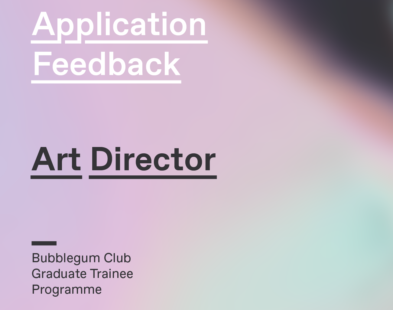 - A lot of applicants sent dense and convoluted bios/portfolios. The people who were most successful were the ones that sent clear, concise and easy to navigate portfolios/bios/cv’s. Ones thats led you through the presented information and content in an articulate way — and where the key information / key visuals stood out — were prioritised.