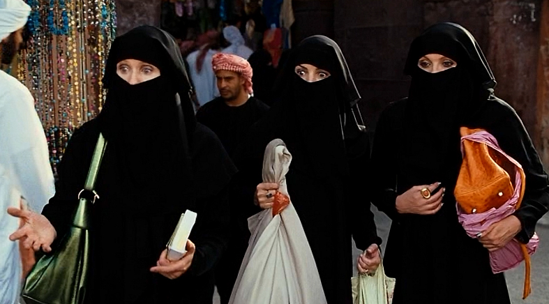 The film, from its onset never allows the four women to interact with any Muslim woman on any intelligent sisterly level. Towards the end of the film, which takes place in a Hollywood version of a Souk to enforce an Oriental feeling, Samantha drops her handbag spilling out condoms and is aggressively condemned by Arab men who surround her shouting “Haraam!” —meaning forbidden in Arabic— while Samantha yells back, “This is for sex.” Thus, asserting the belief that the West is more progressive than the backwards ‘Orient’ in which sex is taboo—apparently New York is the only city in which there is sex. Samantha also comments that “it is like [Muslim femmes] don’t want to have a voice”, while observing a veiled femme eating beneath her veil. This made me feel uneasy as a Muslim femme, as here we see a character —who is idolised as forward thinking and sex-positive— perpetuating beliefs which construct ideas of western, and thus white, superiority. A pivotal scene in Sex and the City 2 takes place when the four main characters are saved from angry Arab men by niqab wearing Muslim femmes. The Muslim femmes lead the main characters into a private room within the souk in which they unveil themselves revealing the latest designer spring collection. This moment of ‘sisterhood’ attempts to unveil Muslim women with the intention of showing that the veil does not limit them but is done in a way which forces them into a western ideal of feminism. The characters are excited that the Muslim women are falling into their ideal of womanhood by reading the same book as them and wearing the same clothes beneath their cloaks. There seems to be no understanding that this is a misrepresentation of womanhood in the Middle East by equating it to western ideals of womanhood, presenting capitalist and shallow ideals which have little to do with feminism. However, we shouldn’t be surprised that this would happen as the show was so clearly set in the paradigms of white feminism. Being created in 2010 you would hope that these femmes at least had a better understanding of the world as it was/is now, not the whitewashed reality created when the show’s first season was premiered in 1998.