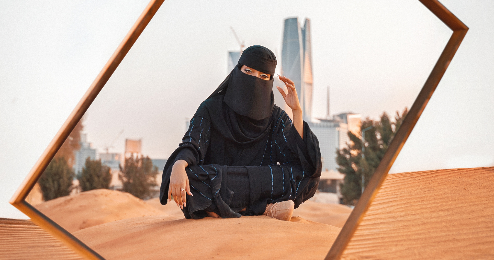 Western ideas about notions of femmeness and womanhood in the Middle East are informed by religious stereotypes and the representations of Islam in the media. Western media is inclined to show Islam as intrinsically oppressive towards femmes through the weaponising of the veil to reinforce the thought of “backwardness” of Islamic societies. While there is no denying that many Islamic State governments have long ways to go in terms of rights for femmes, it is also time that we as Muslim women began leading our own representations and writing our own narratives to shift the reductive and violent ways in which we are represented. For me, that is why the visual presence of femmes such as influencer and niqabi model Amy Roko are important. Amy Roko, unlike most models, only utilises her eyes and hands in the content she creates with the rest of her body being covered in a Hijab, Niqab and cloak. Using her platform to speak on femme issues in the Arabian peninsula and uses humour as a mechanism to have serious conversations.