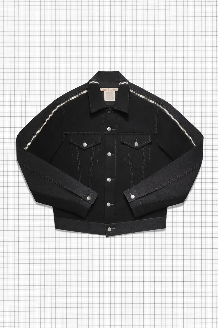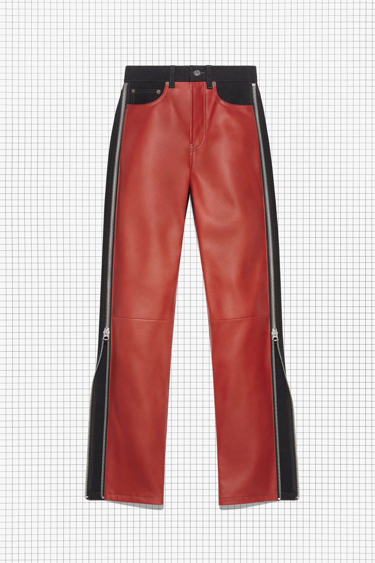 Acne Studios launches season 2 of garments made with repurposed textiles. Constructed entirely from excess fabrics and materials; finding positive and sustainable solutions through design. This season focuses on textural contrasts between red leather, overdyed black denim and overprinted material spliced together with a recurring zip motif.
