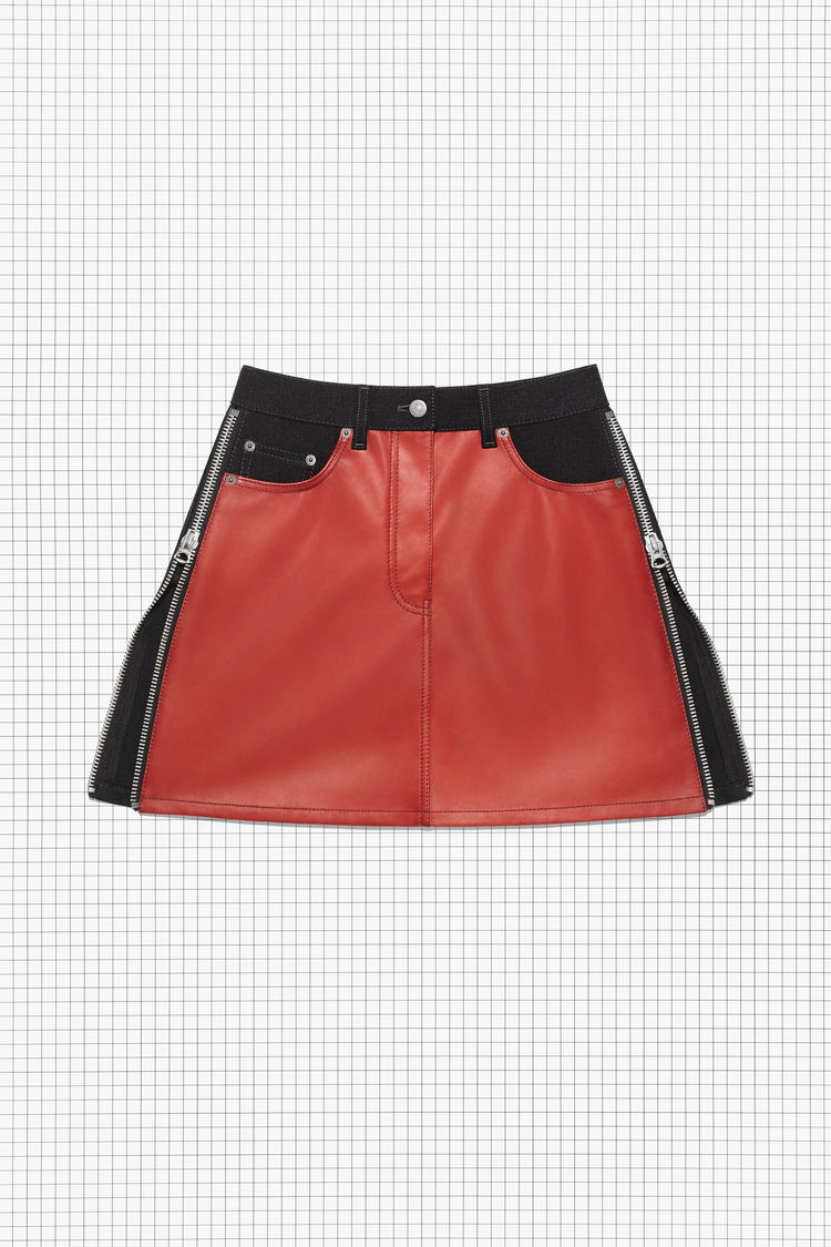 Johnny Johansson’s ready to wear label, Acne Studios, continues to refine its repertoire since its inception in Stockholm in1996. It is hard to imagine that Acne has been in the game for 25 years—as it remains a truly relevant luxury house that is still reminiscent of its underground beginnings—even now as they continue to show seasonally at Paris Fashion Week. To remain a stronghold in a flailing industry, one has to envision a brand as an anchor for their customers to cultivate a unique aesthetic expression; to live and breathe in a landscape of objet d’arts. This is something Acne continues to execute without fail responding not to trends, but rather creating them. The current mullet craze has been on the Acne runway for a few years already—and the newly coveted extended square toed boots once touted as clown shoes? Acne. Having grown exponentially into an international phenomenon, it is no wonder that Acne Studios boasts a fascinating fabric archive from collections past. Without opting to employ “sustainability” as a leading strategy—read insidious marketing farce of the fashion economy—the studio has instead recently released season 2 of their “repurposed” collection. Using excess leather and denim found in the archives, ACNE has launched an exclusive collection of four garments paying homage to USA mid-western aestheticism. A collaged printed blouse, denim jacket, zipped trousers and a carmine red leather mini-skirt all form this up-cycled fashion quartet.