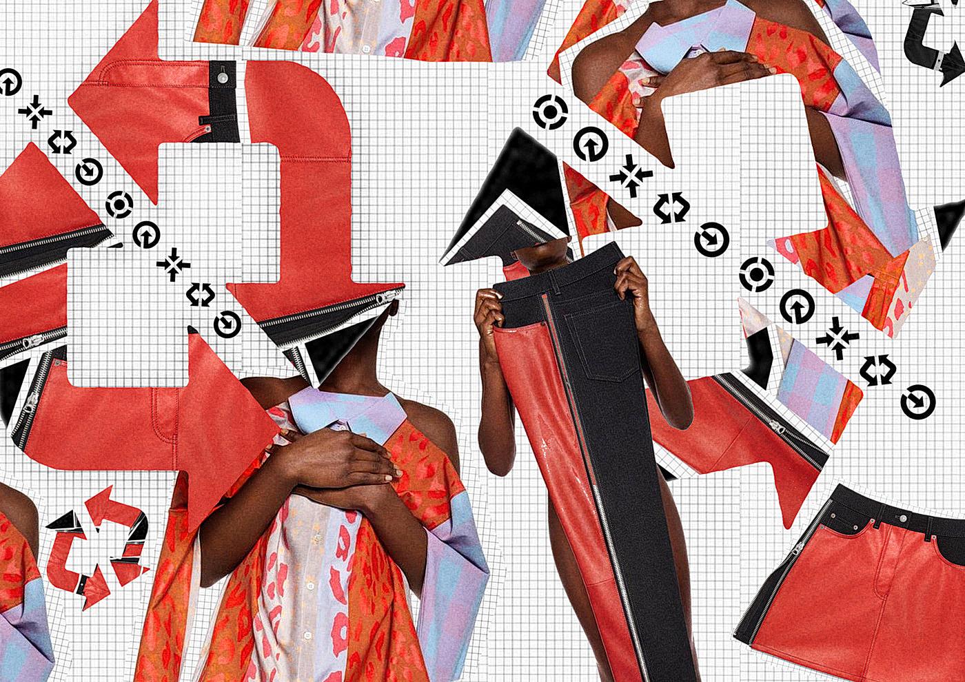 Acne Studios launches season 2 of garments made with repurposed textiles. Constructed entirely from excess fabrics and materials; finding positive and sustainable solutions through design. This season focuses on textural contrasts between red leather, overdyed black denim and overprinted material spliced together with a recurring zip motif.