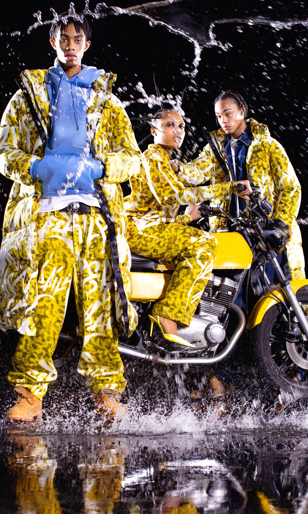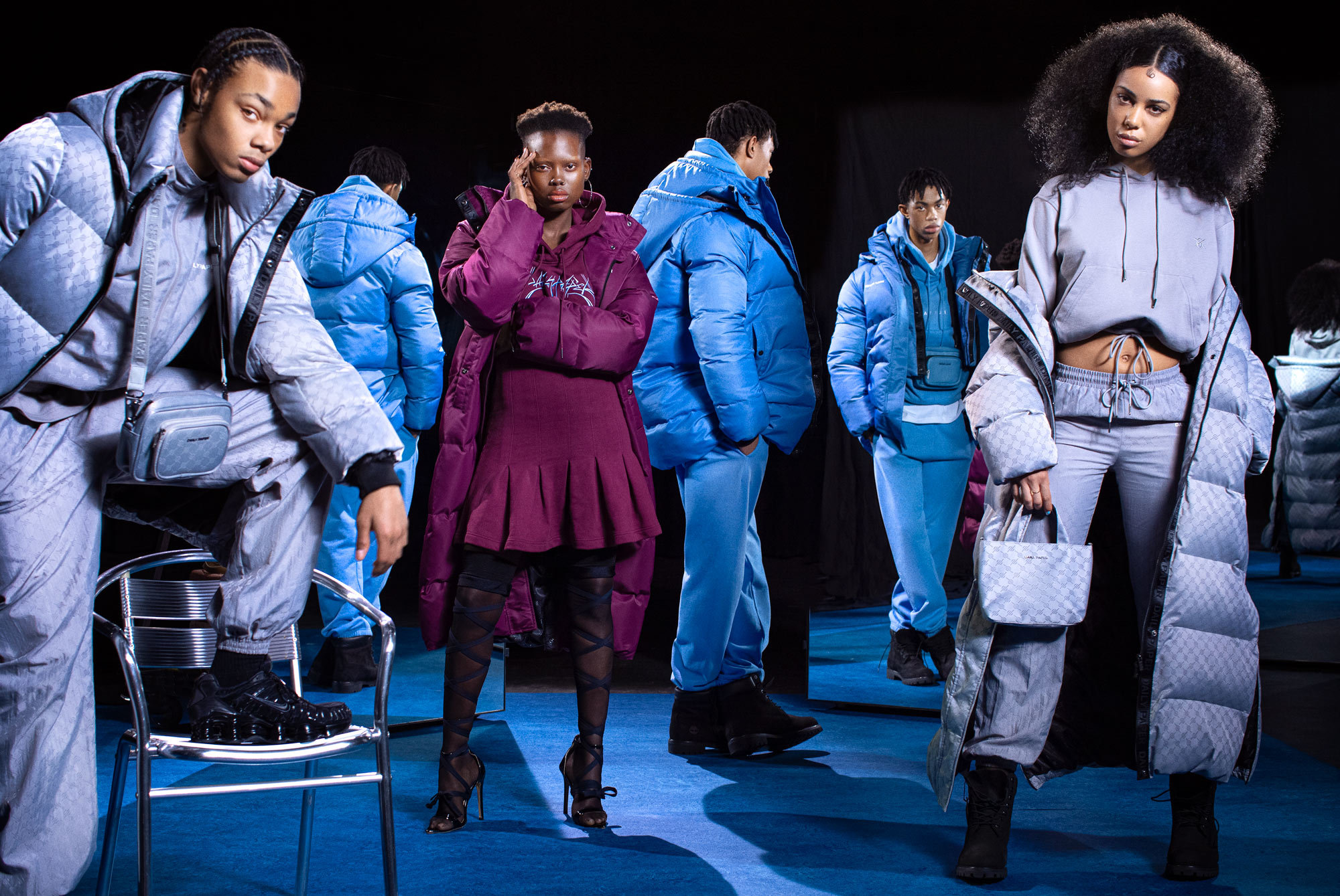 Similarly, we can look at the tonal choices made for the collection, particularly the seasonal puffers that pop in earthy shades of green, copper, burgundy and blue — far more akin to landscapes of Africa than the concrete and cobblestone streets of Amsterdam.
