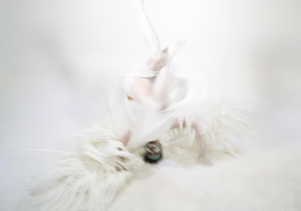 Perhaps the most ambitious work produced to date is the short film Feral. The key theme of the work is fear- ”Fear of Time. Fear of Change. Time waits for no one.” The two minute film focuses on two dancers wrapped in an arcane power struggle. Alison Sischy Smith, in a skeletal white costume and Kieron Jina, in coffin black, writhe and snake around a set full of masks, puppetry and headgear. The result is supremely effective- more a plunge into the psyche than a conventional fashion piece. The success of this film shows the strength of the Fashion Labs collaborative ethos. Linking together different creative people in a workshop space allows their collective imagination to soar.