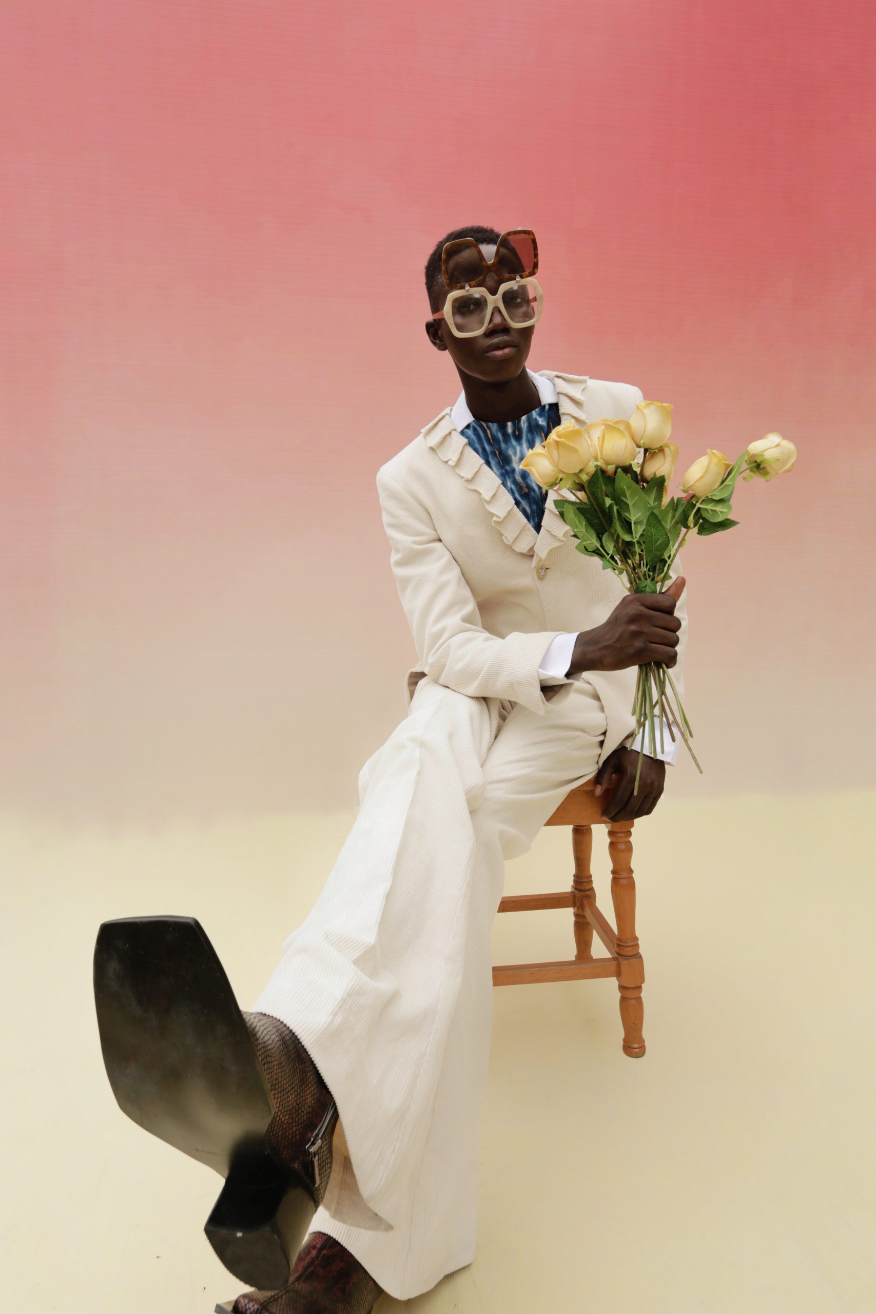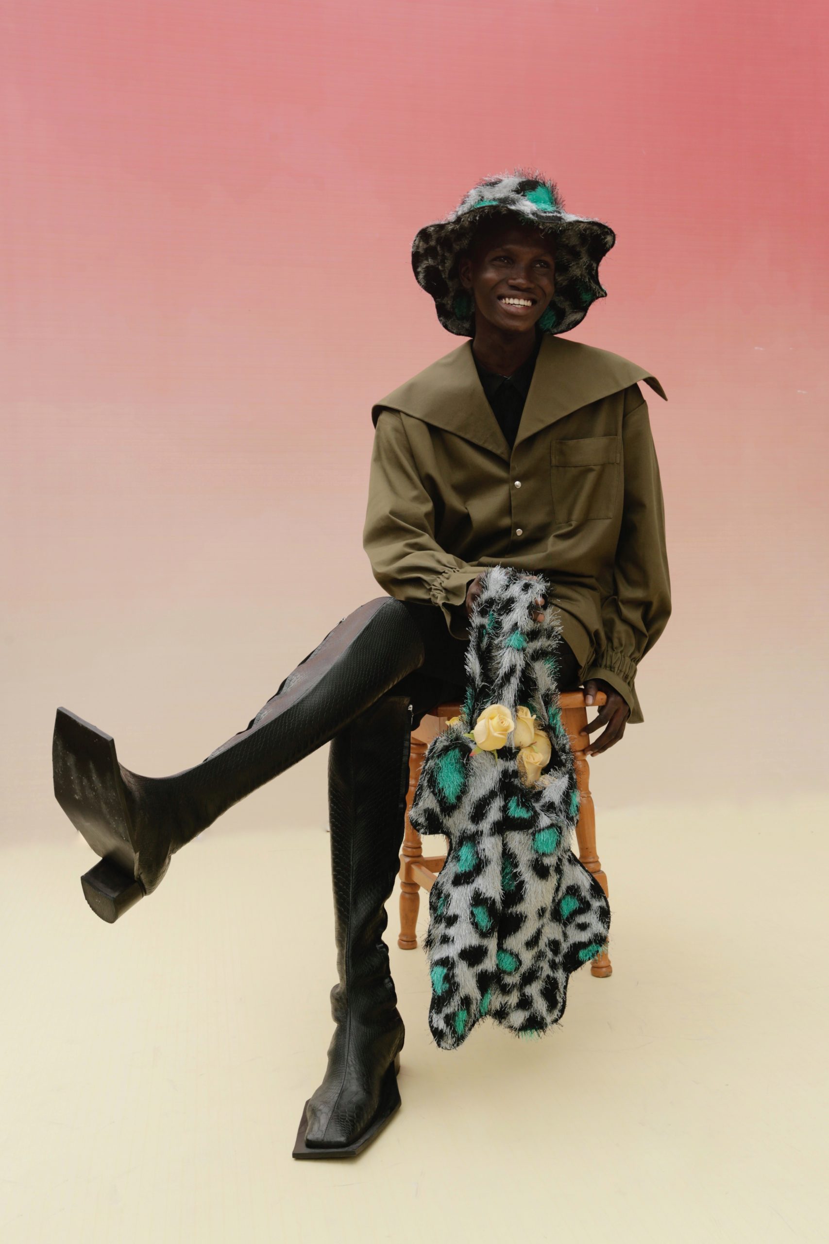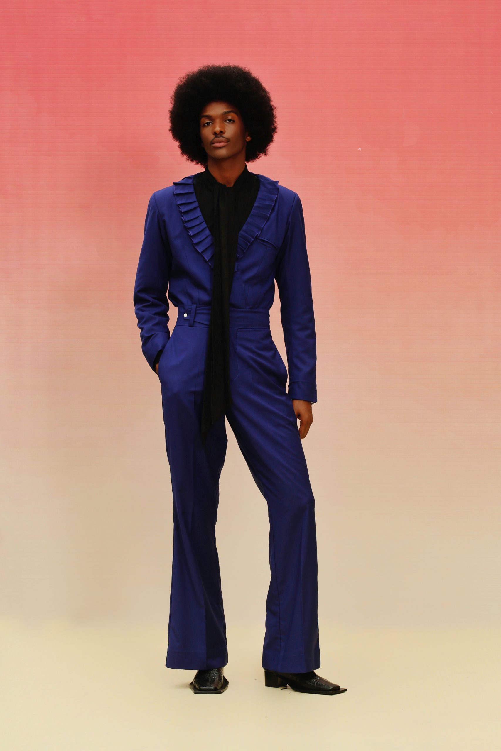But Orange Culture really fascinates me when it comes to their interpretation and translation of themes and motifs connected to, and concerning personal African spirituality. Their latest Autumn-Winter collection, Honest, was no exception — the entire collection is centred around the exploration of “the relationship between fathers and their sons — whom have aged and transformed into ‘truer versions’ of themselves, void of their fathers’ influences.” You quickly manage to trace this key reference within the collection’s look book, with the models fitted in androgynous attire, emulating personal archived portraits of 70s men’s androgynous outfits, provided by Adebayo.
