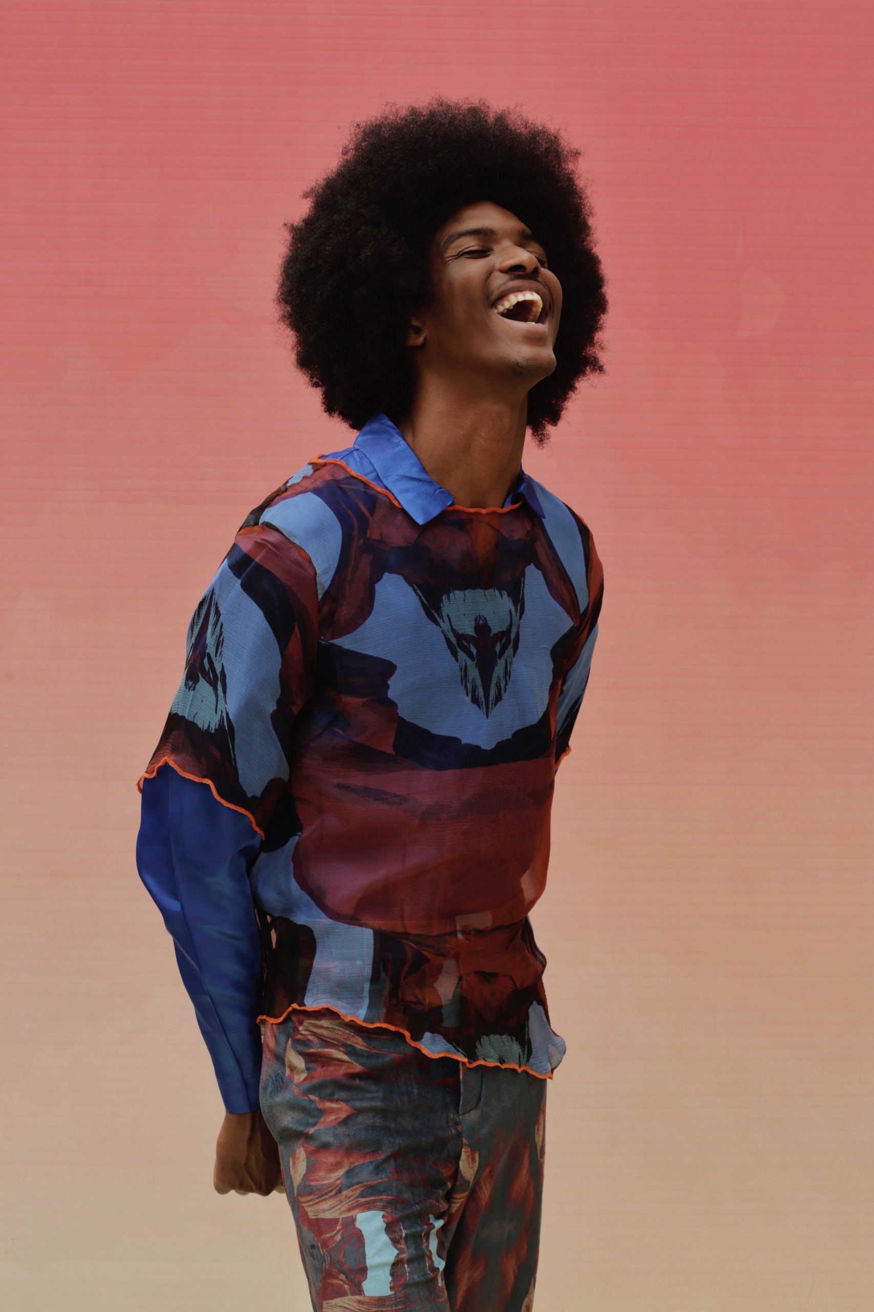 Adebayo adds: “It is a ‘movement’ that covers universal silhouettes, with an African touch to a creative class of people — translating into a heady mixture of Nigerian inspired print fabrics, colour, and contemporary androgynous clothing. We believe clothing should be fluid and have the ability to be worn by any and everyone.” In his most recent Orange Culture press release for the Honest AW21/22 collection.