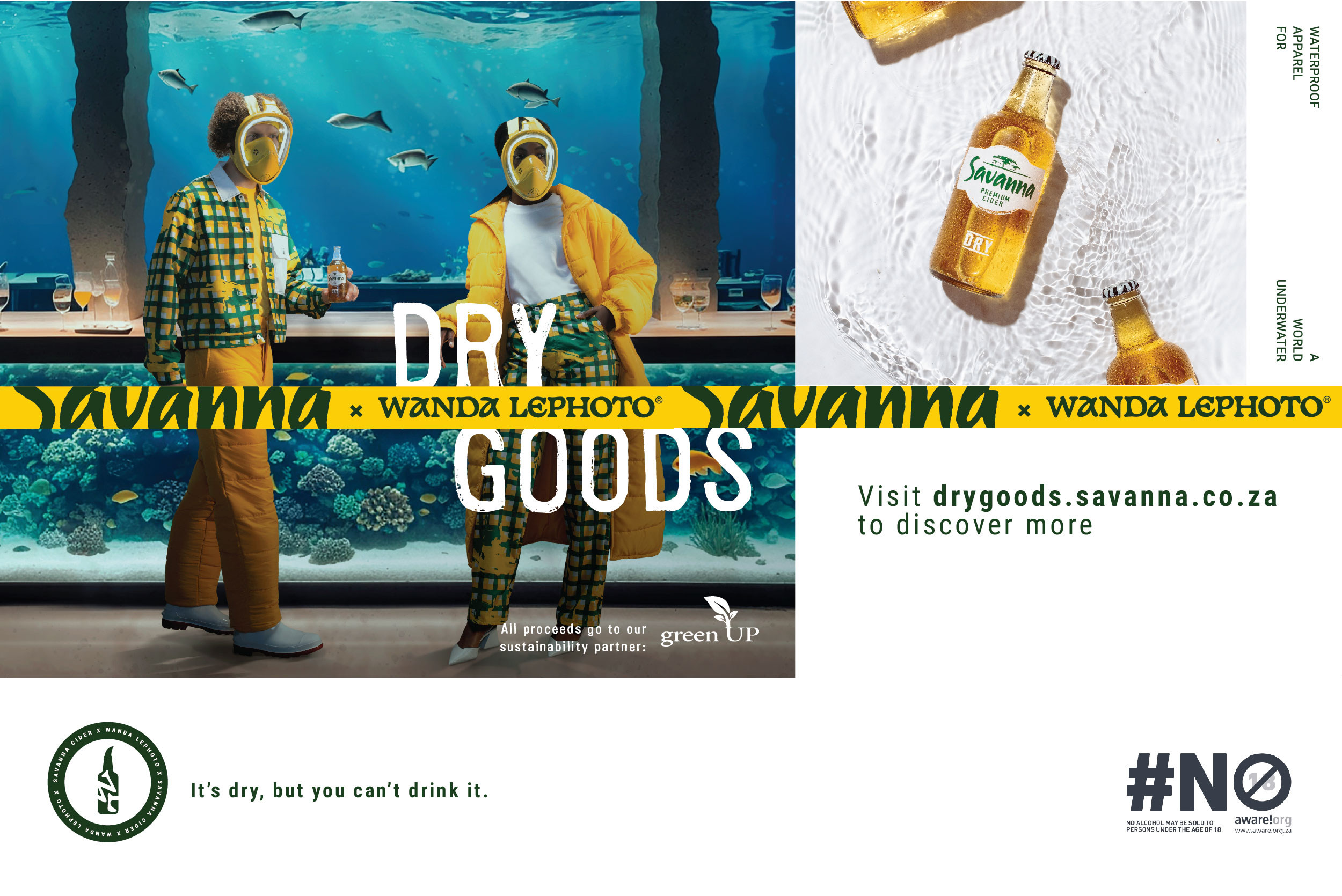 In collaboration with renowned South African designer Wanda Lephoto, Savanna Premium Cider has unveiled its latest fashion collection, Dry Goods—this is a line of waterproof apparel designed specifically for a world underwater. The unique collection is made from 100% recycled materials, showcasing style and innovation and conveying a powerful message about the need to take actionable steps to address climate change.