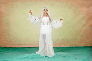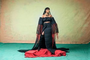 KUNJINA TESFAYE: So, growing up, I’ve always been fascinated by how clothes have a big impact on people’s energies and how they carry themselves. As a designer, I’ve always wanted to bring out or project the stronger version of the women that I dress so I would say it’s empowerment.
