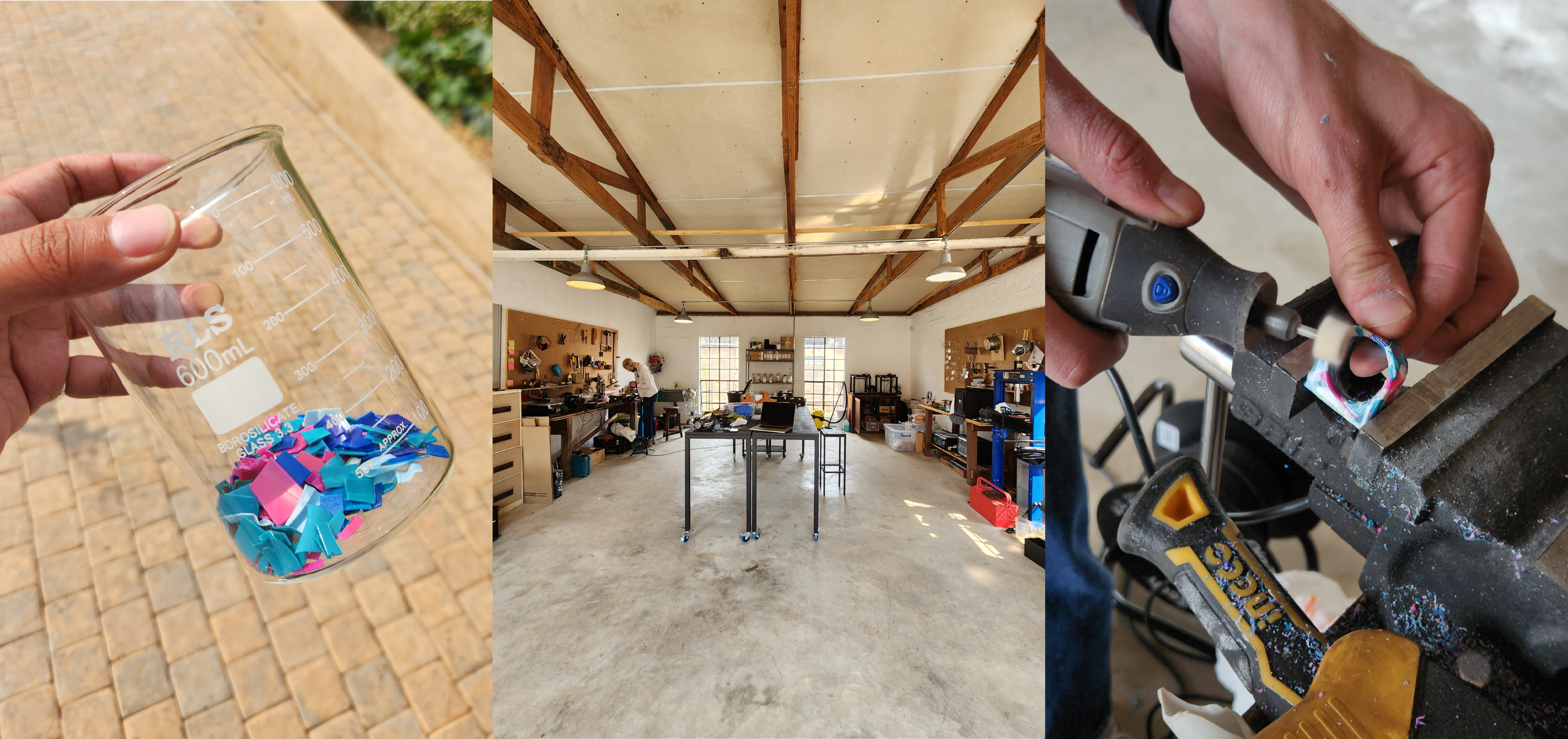With a background in industrial and graphic design, Matthew Edwards employs a “make do” attitude towards creation. His process focuses on what materials and tools are available and the potential they might hold. Seeing people using plastic waste as material while doing sustainable practice research piqued his interest in common household plastics used in food, beauty and cleaning product packaging that can be found in most homes. Adopting this method of material led design, Matt explores latent qualities of waste products that present different opportunities given the ideal intervention.