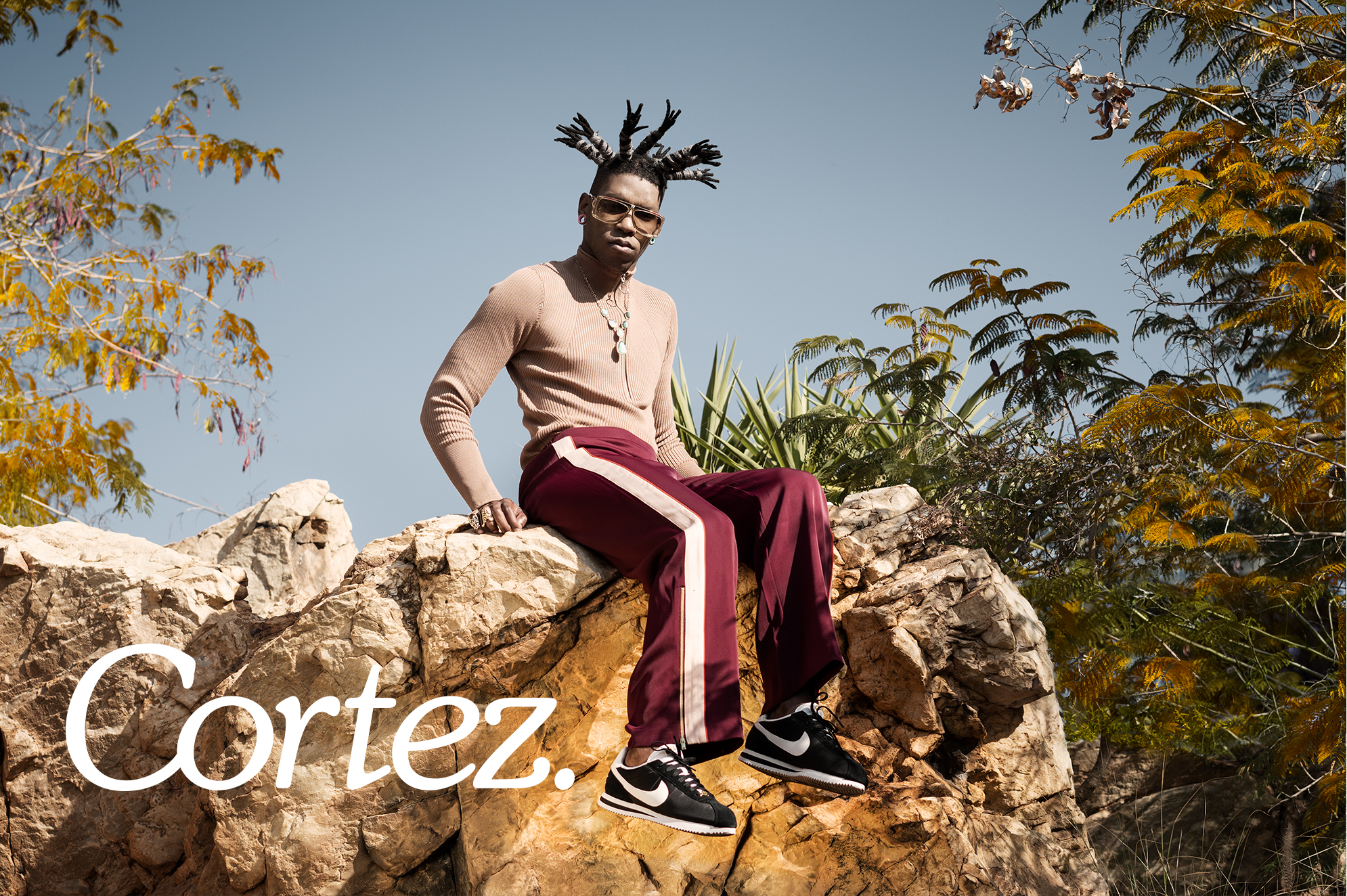 Nike celebrates their classic Cortez with a new campaign. The concept for the campaign shoot draws inspiration from the ’60s and ’70s, and the territories of the Nguni peoples. Looking at how traditional and contemporary cultures collided during that period and place, the shoot also contextaulises and draws parallels with South Africa’s current fashion and cultural trends; namely identity and gender fluidity. Channeling autumn colours and moods, the Cortez is placed within a futuristic gold tinged landscape.