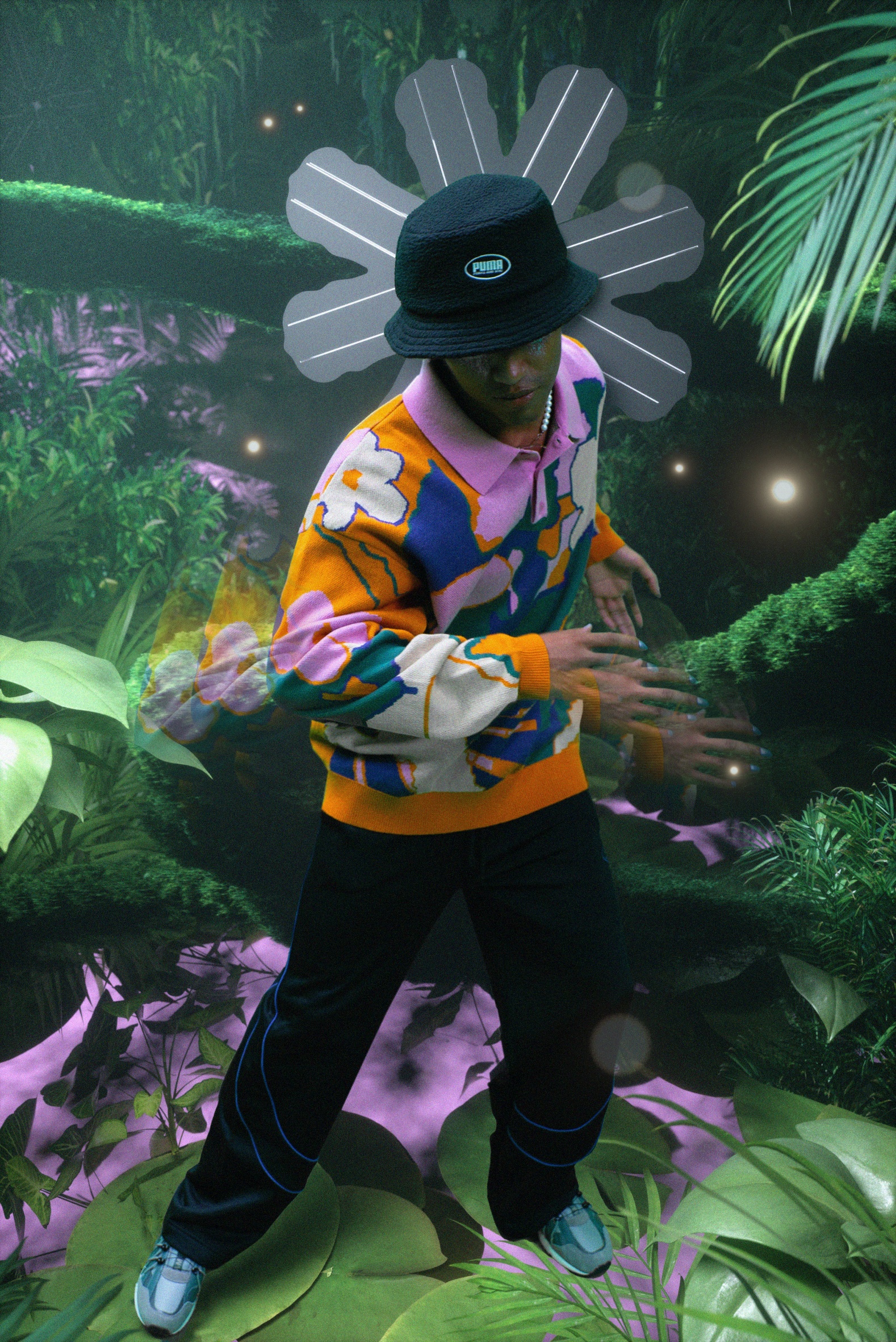 The first ever PUMA x P.A.M. collection offers simple yet daring shapes with strong patterns and all-over prints with a psychedelic touch, taking the wearer from the convenience store to the hiking route. The South American Yareta, a blobby, velvety cushion plant, served as the inspiration for its concept’s rich texture and colour palette. Speaking on the approach, designer Misha Hollenbach states, “We sought to make garments that are comfortable for a seamless passage between the city and the outdoors, uniting both of them.”