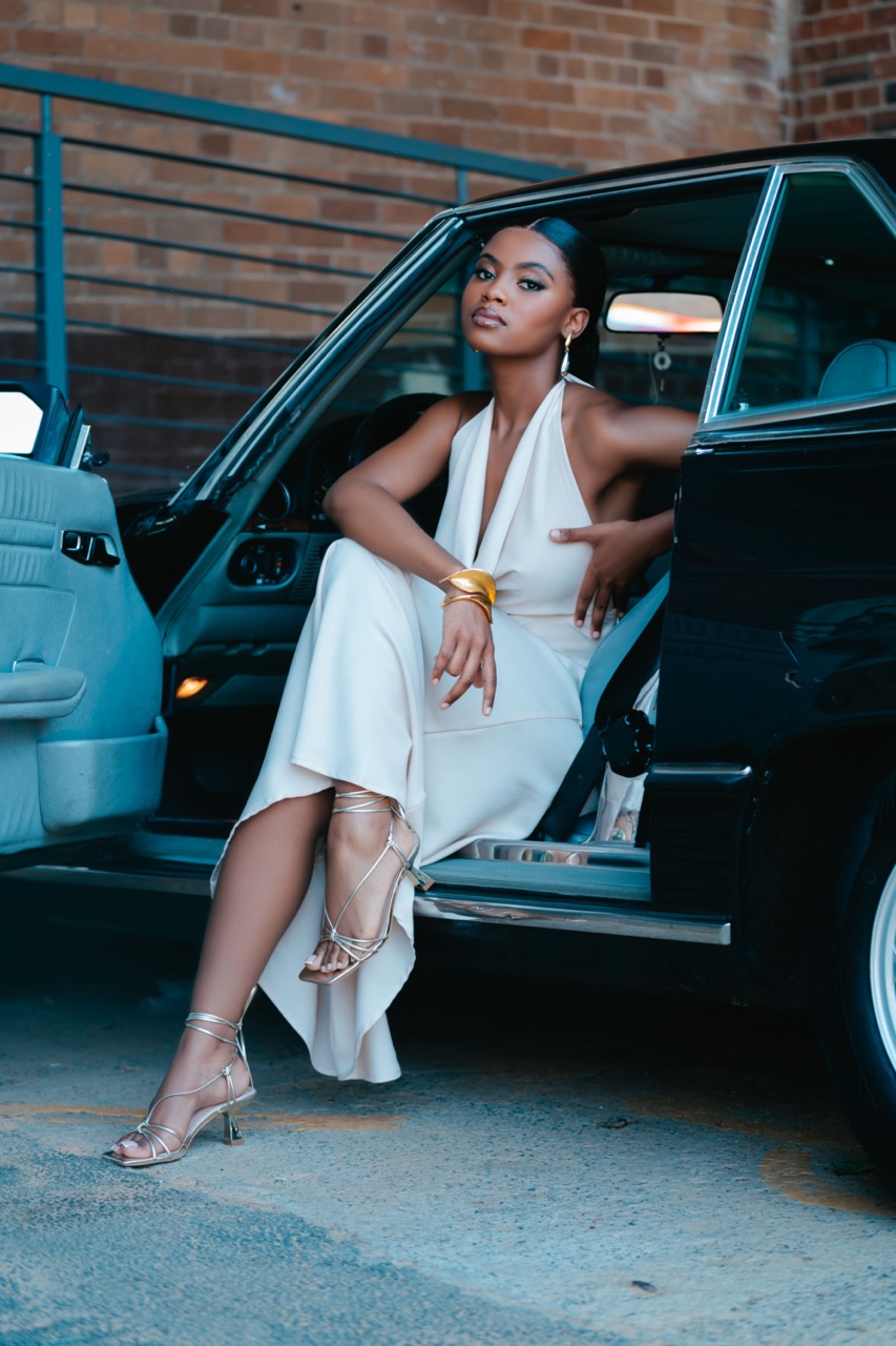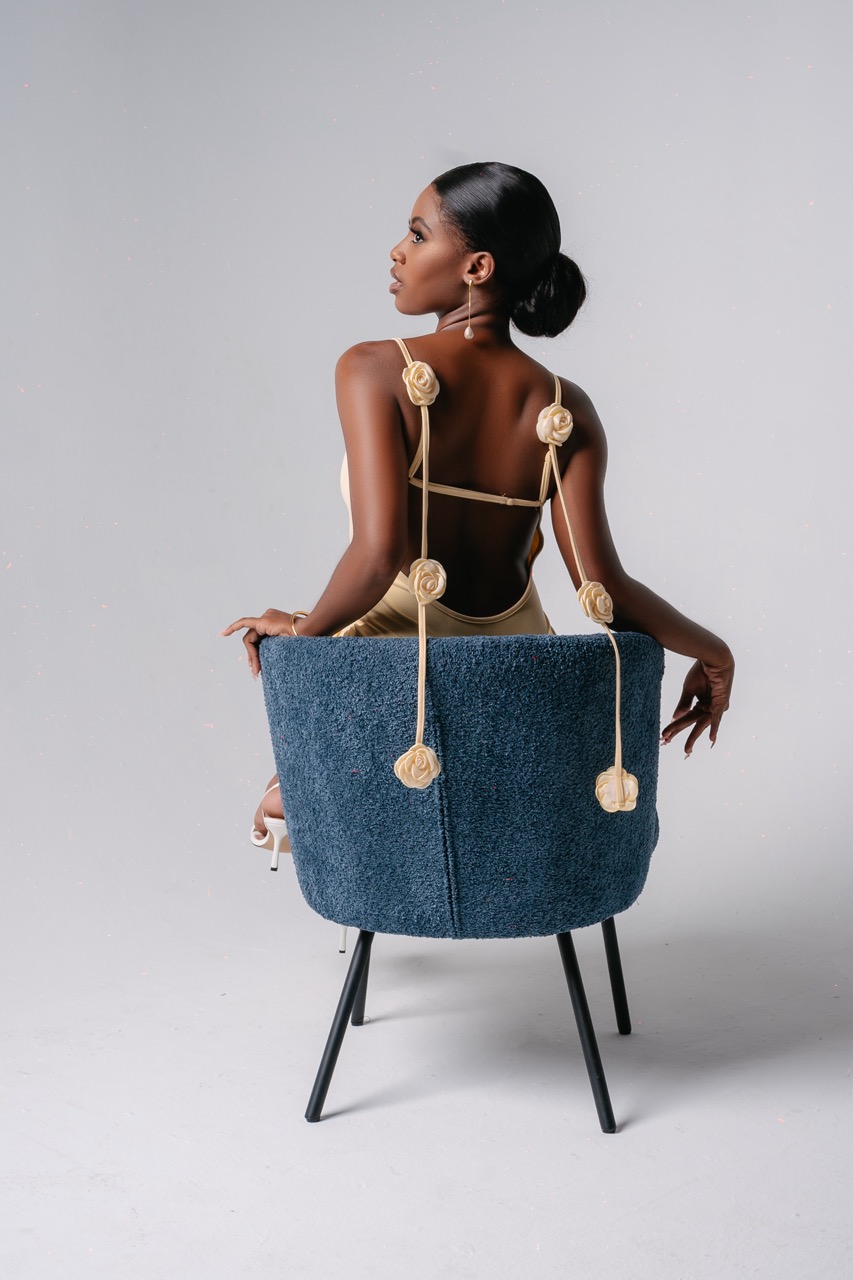 To kick off this launch, Sphokuhle modeled some of her favorite pieces for Bubblegumclub, and they are seriously *chef’s kiss*. Each look showcases a different side of her personality, and there’s something for everyone in this collection! —The Pastel Daydream – This elegant pastel yellow dress is summer perfection. It features a gorgeous, open-back design with straps adorned with delicate flowers, making it the ultimate choice for that dreamy sunset picnic or a night out with a touch of romance.