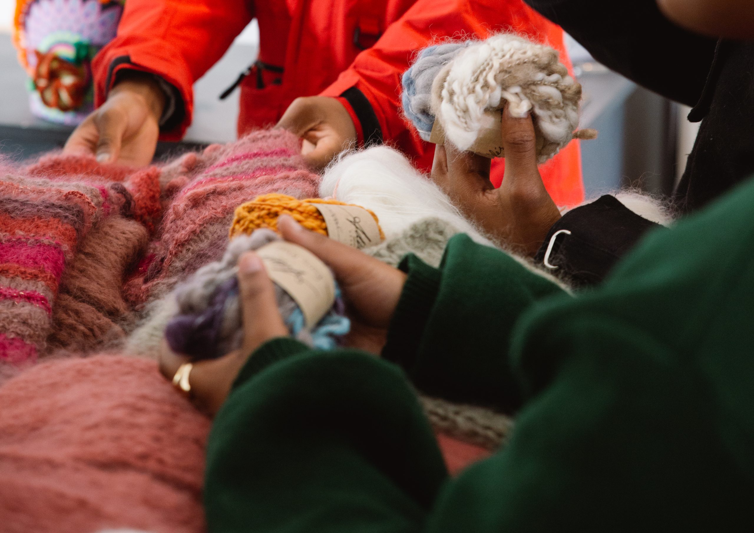 The True Fashion designers began their journey through a visit to the Karoo, the home of angora and mohair. In the town of Graaff-Reneit, the Hlalethwa, Morojele, Mbango and Lassey were introduced to the natural, economic and professional ecosystem of mohair. Over 30,000 people depend on this ecosystem which results in R1.5 billion for the economy. A common greenwashing misconception is that all animal-derived fibres are inherently cruel and bad for the world and while this has proven to be true in the case of mass-production in the fur and leather industries, South African mohair is notable for an almost industry-wide understanding of ethical sourcing. No natural fibre is without its dark sides–modern cotton farming can be dangerously water-intensive, overly dependent on pesticides and in some cases utilises forced labour–but communities in the global South have proven several times that slow, indigenous approaches to production are the key to keeping these natural fibres around for a long time. Natural fibres are preferable to synthetics like polyester and acrylic for their ability to biodegrade, their lower impact on the environment and their inherent properties for warmth, water-resistance, cooling and even inhibiting bacteria as is the case with linen.