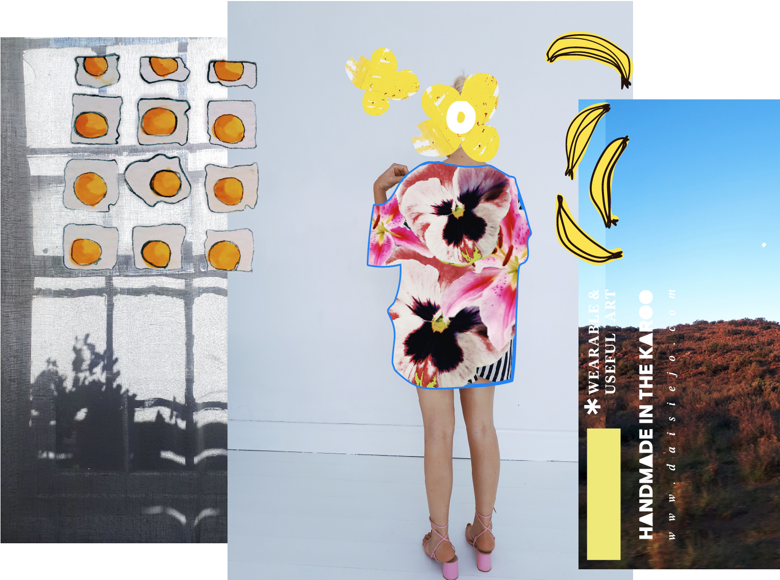 The eponymous label Daisie Jo depicts wearable art as a step toward sustainability – holding a profoundly succinct ethos of slow fashion, generational skill transference and in-house production values. Tucked away in the Karoo, lies their dreamy studio adorned with collaged prints, rainbow colour threads and hands on artisanal craftsmanship; each garment is uniquely constructed, stitched and sometimes painted with emotive motifs. Daisie Jo creates a poignantly soft world of colour and texture through the application of fashion design and ensures that this label remains an antidote to the diabolical fast fashion neurosis that so much of the industry is rooted in. I am moved by the thought of such love and consideration being woven into a garment and treated as if it were priceless fabric — honouring both the textiles used and the touch of human ingenuity.
