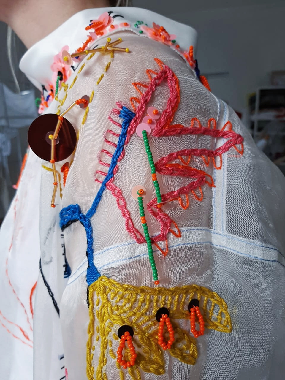 Yes, I grew up in a creative environment I guess. My dad is an architect, my mother had a decor factory with seamstresses and with my Ouma’s intricate embroidery – so I was constantly surrounded by it. I was allowed to draw on the walls from a very young age. Our house was always full of artist friends and crazy old garden ladies. My mother taught me that nothing is too precious for everyday use. So wearing a garment once or twice completely eludes me – I think every piece you own should make you happy in some or other way. So I guess that is why I love making and wearing detailed embroidered or beaded pieces and wearing them everyday. Wearable & useful art.