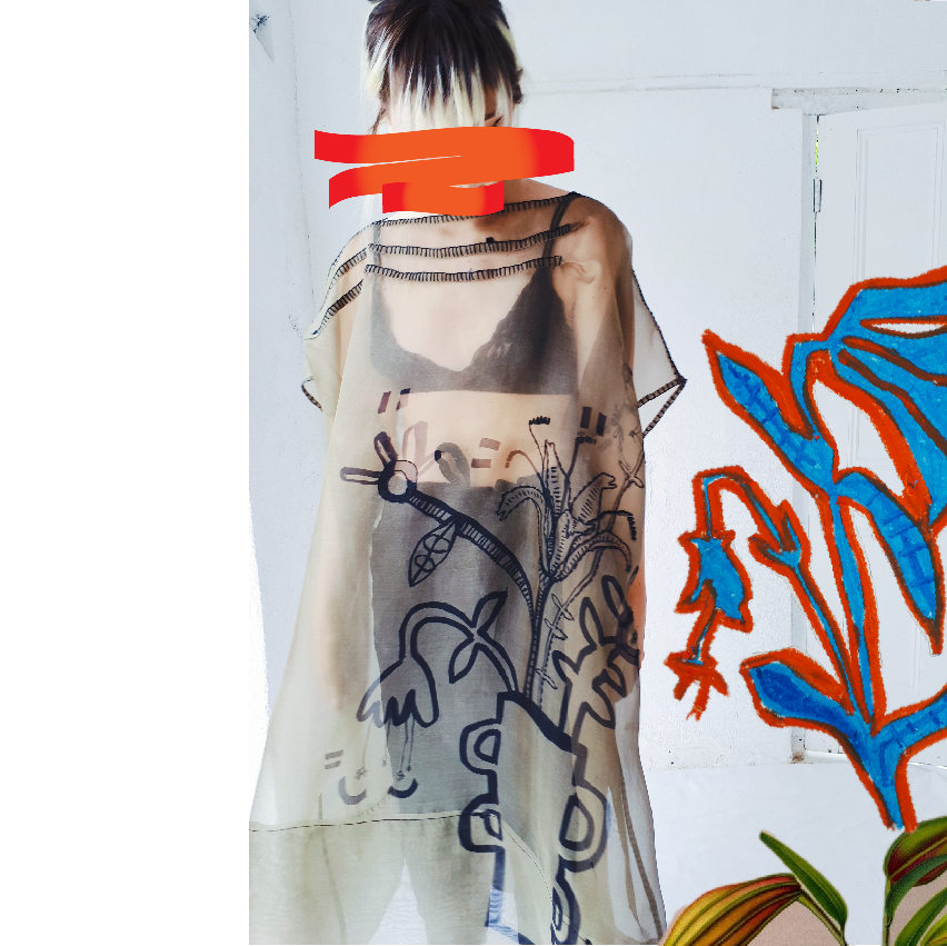 Time is luxury. I put a lot of time and consideration into each garment. Hand cut garments = Minimal waste. Making beads, pressing flowers and drawing prints—repurposing. Limited resources push me to innovate and work with what I have, which takes a lot of time; slow fashion quite literally. Considering the garments lifespan by starting with quality fabrics is very important to me, natural fabrics feel better against your skin. Creating special pieces thus heirloom garments, [that will pass from] generation to generation is the goal. Respecting the craft of making clothing but also not taking it too seriously. I am so privileged to have clients that appreciate & enjoy the pieces as much as I do making them. I love seeing how everyone wears it and styles them.
