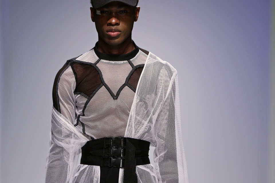 His SS18 collection was inspired by the idea of visiting a dreamlike place, a story that continues from his previous collection. Explaining the story and how this was translated into garments, Tsepo stated that, “He [the character] has to adapt to his surroundings and find a way to make his purpose mean something. A man in a place of desolation. [In the collection] there are elements of dreaming, poeticism, romanticism, darkwave, sportswear and twists on menswear. There are also deconstructed elements.”