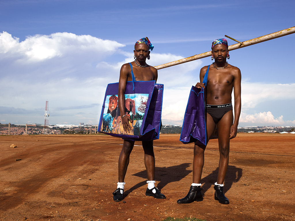 Buyani Duma and Thato Ramaisa accomplish their pursuit to infiltrate spaces through the expression, reimagination and liberation of queer bodies as Desire Marea and Fela Gucci, collectively known as FAKA. The isiZulu word faka, which means to penetrate, seductively nuances how Desire and Fela validate new vocabularies of communication about black queer identities through their performance art, music, photography and videos.